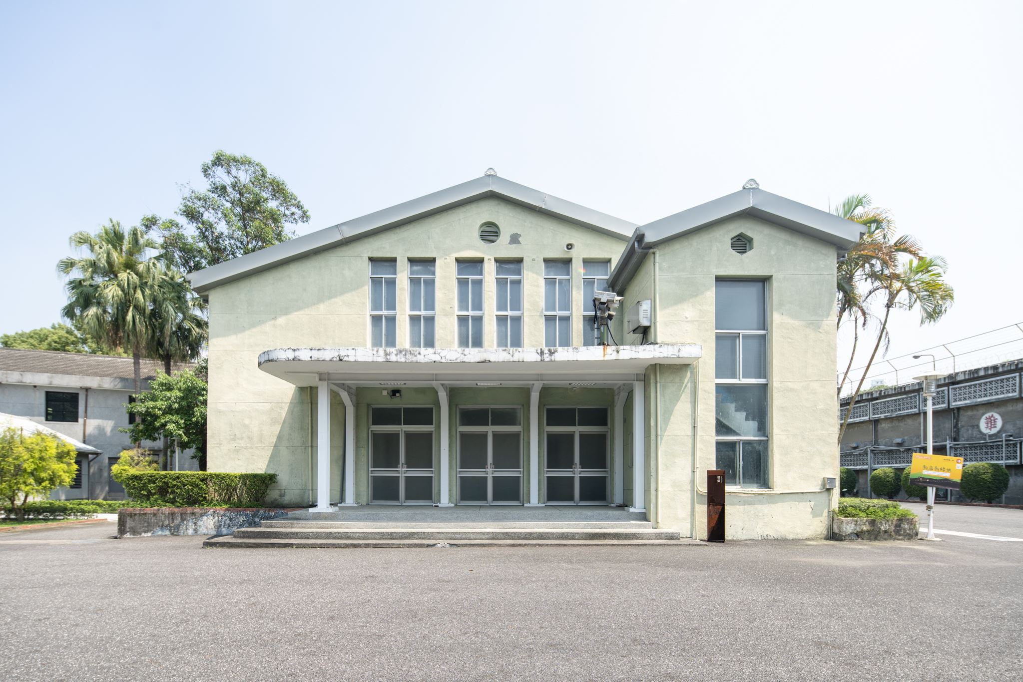 禮堂為單層鋼筋混凝土建築,搭配木屋架斜屋頂,高度9.1m、樓地板面積178坪,軍法學校時期興建之初即做為禮堂使用,是園區內各行政建築中室內空間最大者,大型活動聚會、典禮都在此進行。