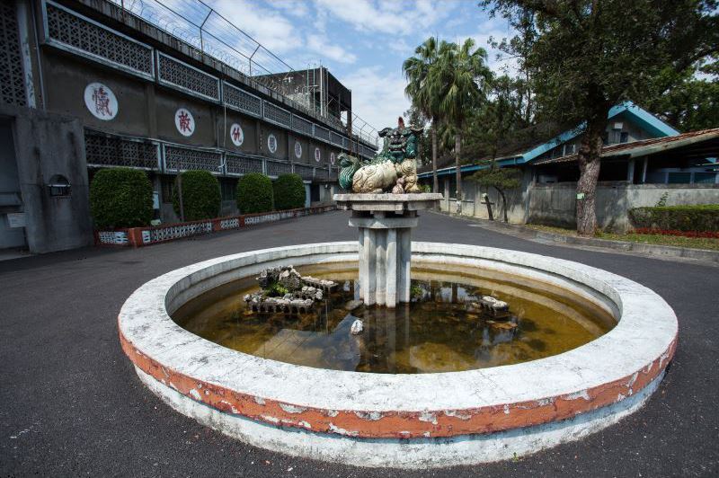 獬豸是傳說中的神獸,頭頂長有獨角,喜歡居住在水邊,見到有人起紛爭時,便會用牠的獨角頂向不說實話或不講道理的一方。園區此座水池是由當時被監禁於此的政治受難者林池所設計製作,取其「主持正義」寓意而建造此獬豸水池。成為代表正義的祥獸,古代法官戴的帽子稱「獬豸冠」,現今台灣憲兵的臂章上也有牠的圖像。