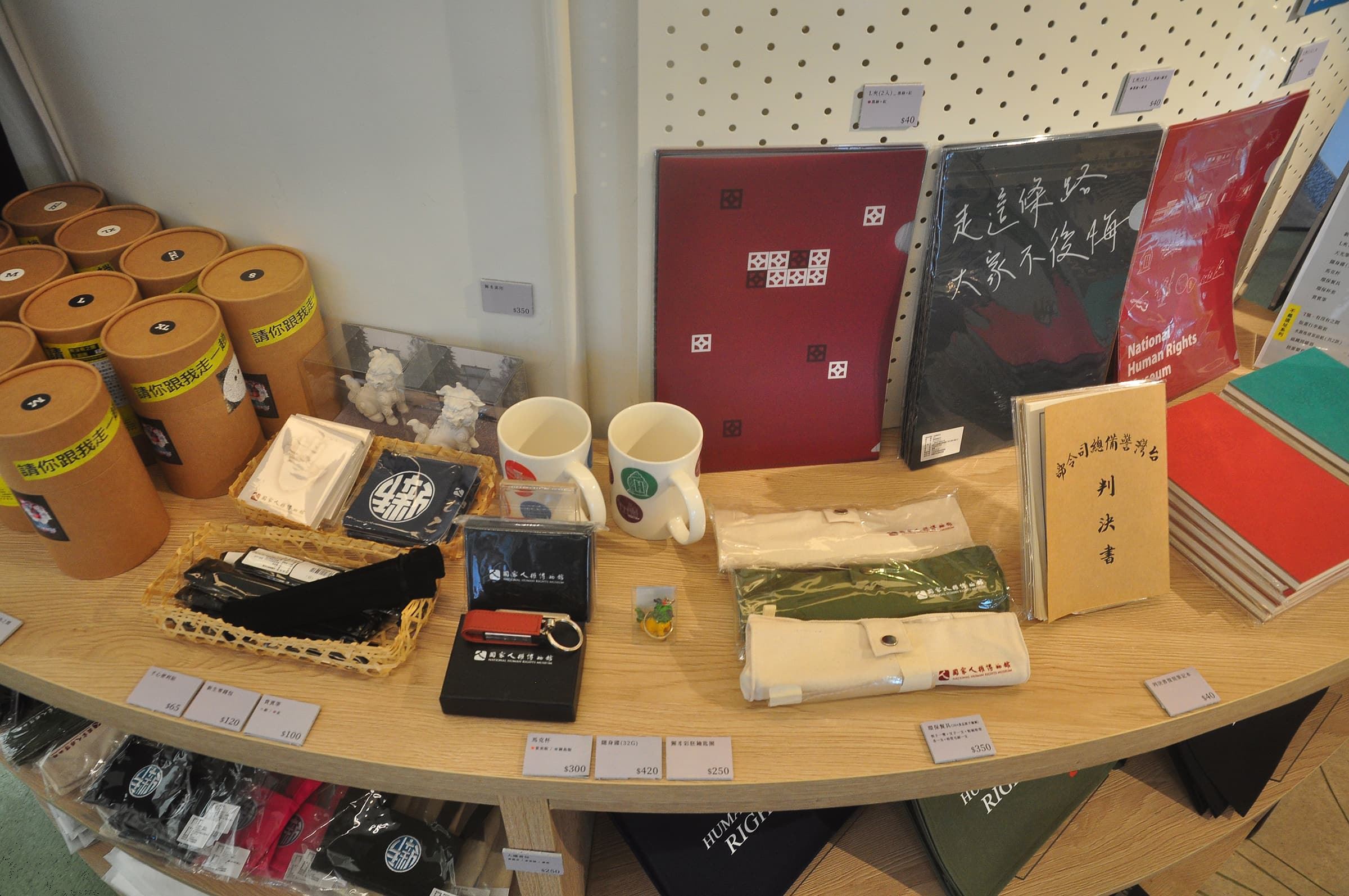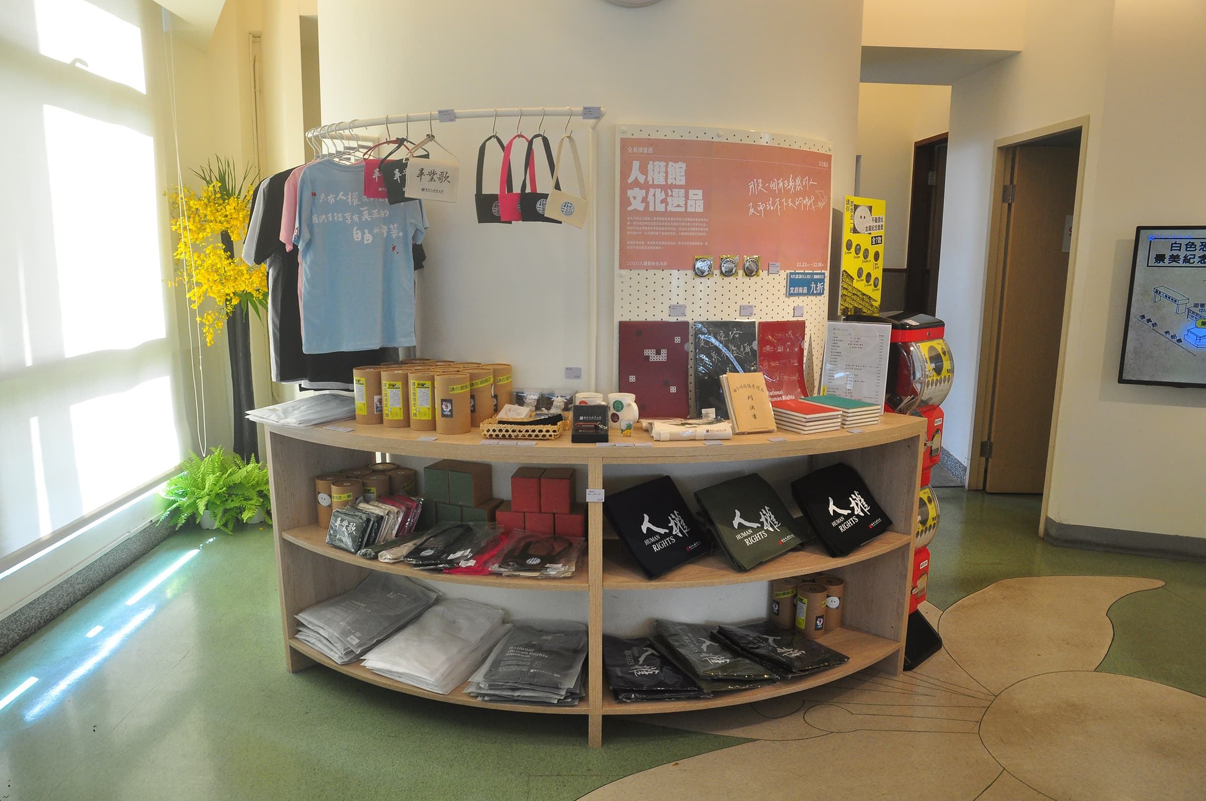 「每個進博物館參觀的人們,也許不一定每個展間都會光臨,但必定都想進入博物館商店。」進入博物館商店,是一種回憶的具象化,讓這趟博物館之旅的收穫,能帶回居所繼續回味紀念,本館景美園區博物館商店,便以此為根基,用人權知識出版品及生活化的文創品,在人權現場打造一處說故事的博物館商店。透過商品及人權教育推廣活動,促進民眾參與,並時刻關心民眾需求、提升服務品質。