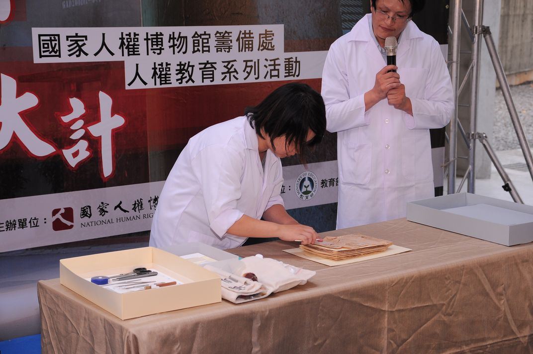 最後,系列活動安排「文物健檢」活動,受難者的家書、文章手稿、小工藝品,不僅是歷史重要資產,更可能是受難者家屬唯一可思念親人的珍貴記憶。因此,國家人權博物館籌備處特別邀請專業文物修復師於現場教授簡易健檢方法及修復方法。民眾也可以將家族珍藏關於白色恐怖之回憶,帶到健檢會場,讓專家為文物檢查、修復,以保留珍貴記憶。