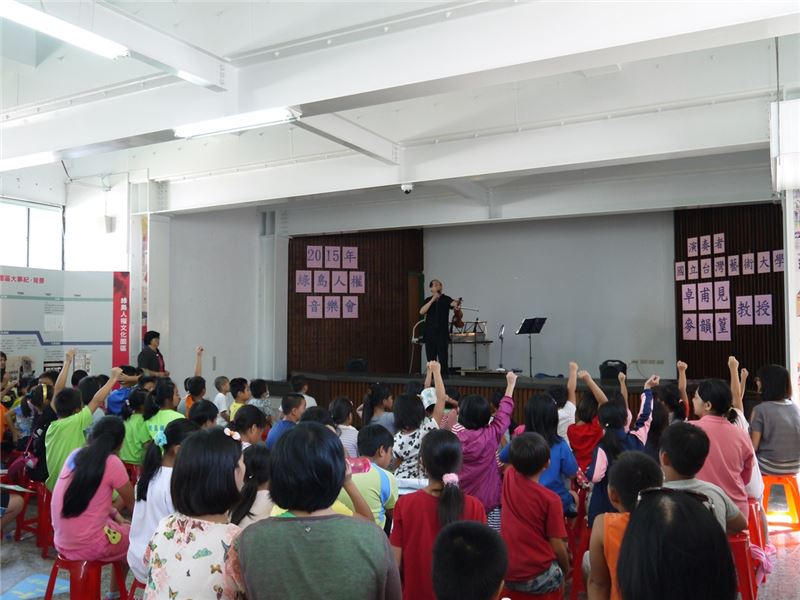 為使推動活動深入綠島校園與家庭,饗樂曲4場音樂會特別與綠島國中、綠島國小及公館國小共同合作,選定星期三下午學生課外活動時間舉辦,讓綠島學子,近距離接觸高水準的室內樂,開啟藝術視野;同時在綠島人權園區認識白色恐怖的不幸遭遇,提升孩子們的人權意識,更深刻認識家鄉綠島的人文演變。