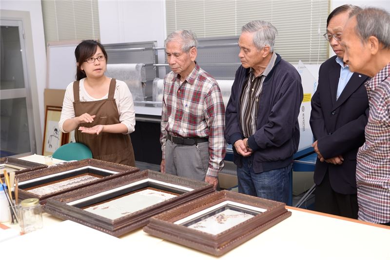 活動邀請政治受難者韓佐樑、陳松、陳水清先生等參觀位於景美園區內的「文物典藏工作室」,以韓佐樑先生捐贈瓷盤作為文物保存工作示範。兩位年輩同時被送至土城生產教育試驗所,因慶祝國慶時被指定畫壁報而認識,瓷盤為難友沈匡宇親筆所繪,贈予韓前輩惠存。沈前輩在軍人監獄服刑時曾擔仼蛋殼畫外役,原欲贈予蛋殼畫留作紀念,但因保存不易,沈前輩另於白底的瓷盤上,畫上栩栩如生的老虎,並留下筆名「石人」與「士風」的筆名。為白色恐怖時期的歷史,留下一段感人的難友情誼。經過修復師的解說、實務操作,從檢視登錄、基礎除塵、數位化過程,到製作保存維護措施、上架,瞭解博物館典藏文物前置作業流程。