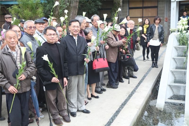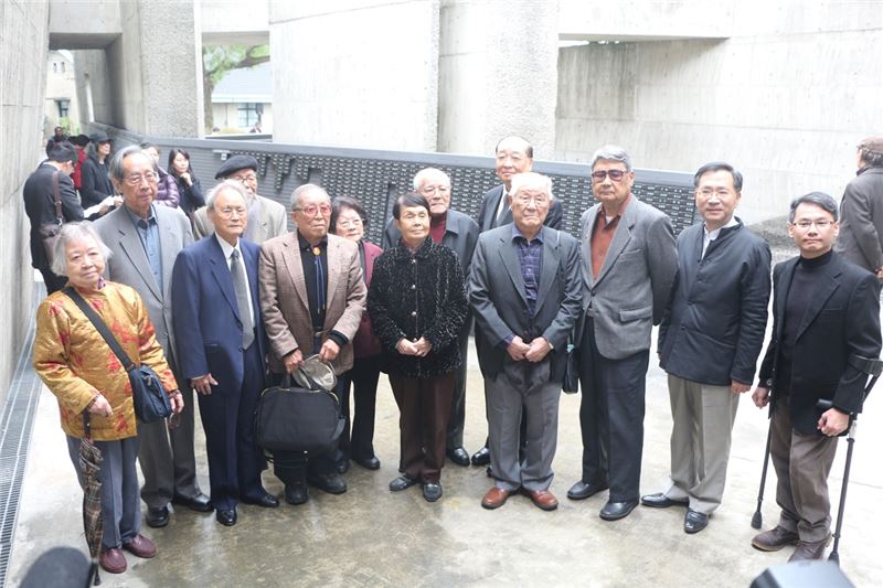 竣工巡禮現場,文化部長洪孟啟邀請與會受難者長輩、家屬們手持一朵鮮花,向紀念碑鞠躬致意,表達對集體苦難歲月最深的感念。洪部長陪同吳聲潤、張常美、陳明忠、蔡焜霖、蘇友鵬、郭振純、馮守娥、陳孟和、蔡寬裕等長輩,將刻有他們名字的碑石安放於紀念碑上,完成竣工儀式。