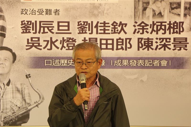 文化部所屬國家人權博物館籌備處24日上午舉辦「政治受難者劉辰旦、劉佳欽、涂炳榔、吳水燈、楊田郎、陳深景口述歷史影像紀錄專輯」成果發表記者會,邀請政治受難者前輩近50名出席,透過影像還原白恐歷史真相。籌備處主任王逸群表示,人權館今年底累計將完成30部受難者前輩口述影像紀錄片,「受難者前輩親自現身為苦難時代作見證,提醒後人不要重蹈歷史錯誤。」