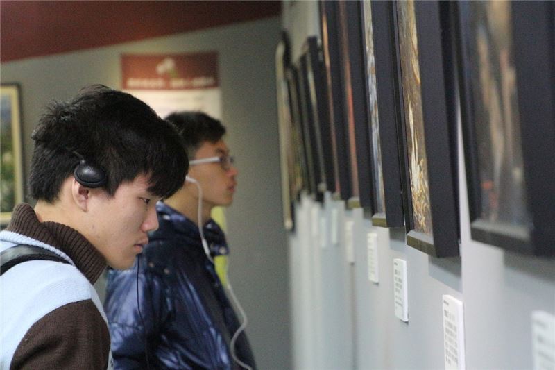 本次展覽共展出歐陽文先生40幅作品,包括青年時期入選全省美展的《全台首學》、忠實紀錄二二八事件及白色恐怖歷史的《望兒歸》、《台灣人的悲哀》、《活體實驗》,象徵自由和平與公義社會理想的《從黑夜到光明》、《和平》、《共存》,以及19幅紀錄50年綠島近乎原始生活的純樸影像。導覽過程中,透過歐陽煇美女士細心介紹,讓參觀學子更深入認識作品的精神內涵,緬懷歐陽文前輩熱愛生命、追求自由的人權藝術貢獻。