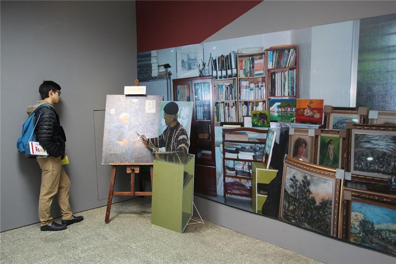 「這是我父親的畫室,百合和水牛是他最喜歡創作的題材;他作畫時習慣聽交響樂,旁邊還有五台收音機,想聽什麼廣播,就開哪一台。」白恐受難者家屬歐陽煇美女士,3日下午出席人權館籌備處舉辦「歐陽文創作紀念巡迴展」推廣活動,擔任現場導覽貴賓,透過一幅幅生動的油畫與攝影作品,向來訪的台大法律生活營近80名年輕學子介紹她的父親──人權鬥士與前輩藝術家歐陽文先生。