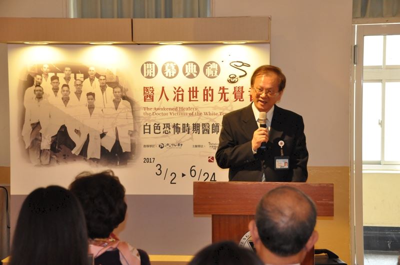 高醫劉景寬校長表示在二二八事件及白色恐怖時期有不少醫師受難,他們犠牲奉獻、關懷社會與堅持公義的典範,值得師生效法,如展覽中的蘇友鵬與胡鑫麟醫師即使身陷囹圄,仍在綠島組醫療團不忘關懷弱勢患者,以及黃溫恭醫師奉獻醫療教育的遺願,這群醫人治世的醫師為理想奉獻社會的精神,應在醫學教育中傳承年輕學子。