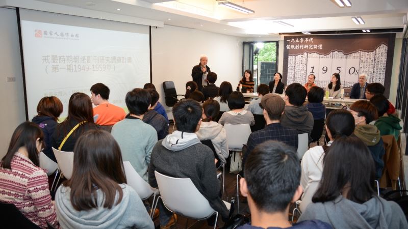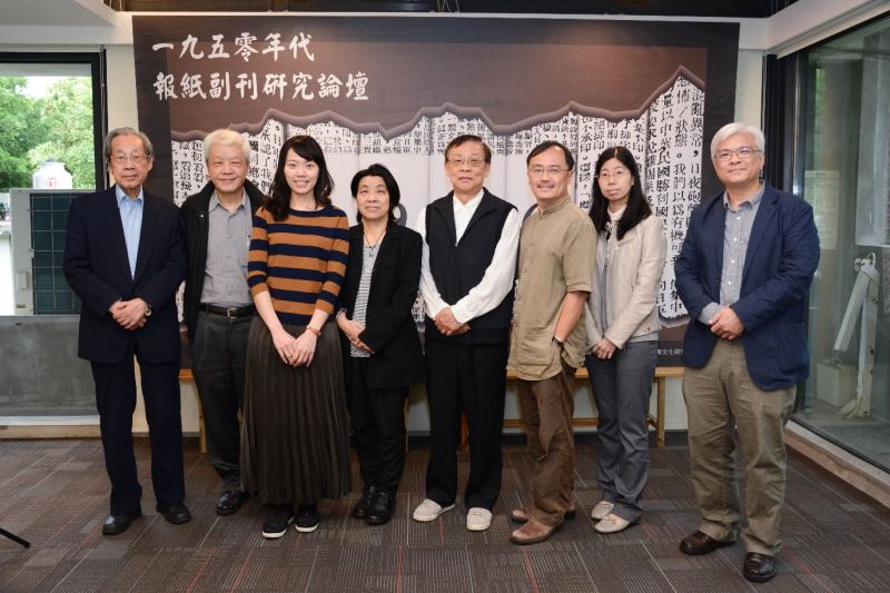 臺灣大學助理教授張俐璇首先針對「一九五○年代報紙副刊研究案」的調查成果進行報告,將報紙副刊分作四大類:「改制自日治時期《臺灣新報》的《臺灣新生報》與《中華日報》」、「二二八事件之後創刊的《自立晚報》與《公論報》」、「黨報《中央日報》與軍報《青年戰士報》」,以及「威權侍從的民營報業《徵信新聞》與《聯合報》」,搭配現場成果海報展示的副刊圖文與相關歷史資料,介紹五○年代八大報中呈現的時代氛圍。除了常載有呼應政府文藝政策的宣傳文論,在《自立晚報》副刊上亦有難得可見的異議言論。