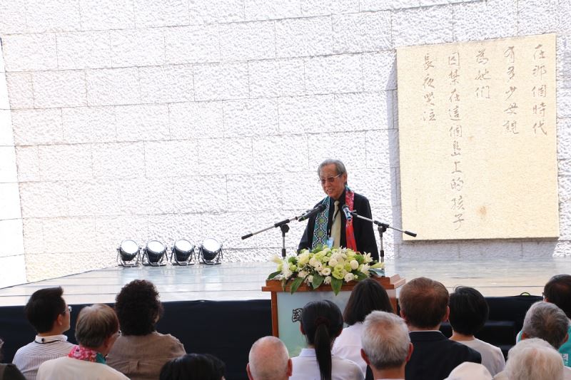 政治受難者蔡焜霖先生上台致詞,向所有當年在島上受苦的難友表達無盡追念