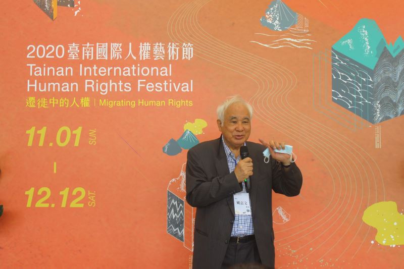 國立成功大學副校長林從一致詞時表示,成功大學校務發展計劃中有一重要精神,便是期許通過大學教育創新,培育具社會意識與社會實踐力的入世學術人。2020臺南國際人權藝術節是成功大學與國家人權博物館第二年的合作,以藝術為媒介開展人權議題的對話空間,正是培養學生具社會意識的活動。本屆以「遷徙中的人權(Migrating Human Rights)」為主軸,包含三個主要展覽,並於觀展後感慨分享自身外婆的移動經驗「是故鄉亦是他鄉」,期望學子能夠從維護自身人權出發、進而關注移工處境。