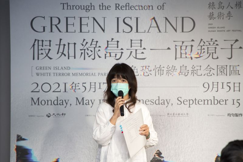文化部次長李靜慧致詞時表示,國家人權博物館除了致力於將人權侵害的歷史發掘、保存下來,也在三年前提出了藉由藝術媒介轉化的方式,把過去痛苦的教訓,轉換成對我們自身歷史的諒解,對未來臺灣的孩子與國人、甚至國際社會對人權的思考。綠島作為一個事件的發生地,今年人權藝術季主題將以「假如綠島是一面鏡子」為主題,李次長提到自己看到主題意象時,感受非常深刻,因為「這面鏡子曾經映照各位前輩在綠島極為辛苦的歷程,而我們今天站在這個鏡子前面,我們想展現怎樣的面容?或者我們的孩子到了綠島,站在這個鏡子前會看到什麼?除了會看到自己,他們還會看到歷史鏡子上出現什麼事情?」