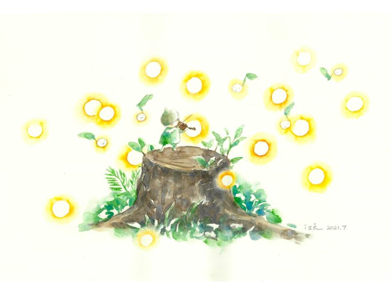 日本重量級繪本作家伊勢英子以「きこえる きこえる 沈黙の歌」(聽得見、聽得見、沈默的歌)首發並創作兩幅作品,繪出在微光中拉起小提琴的精靈、以及自老樹新生的希望,長谷川義史則是描繪孩童手捧如同心臟的蘋果「心はひとつ」(one heart),近(8/11)日則由荒井良二接棒,以兩位彈奏者的形象傳達「I support freedom in Hong Kong」(我支持自由的香港)。