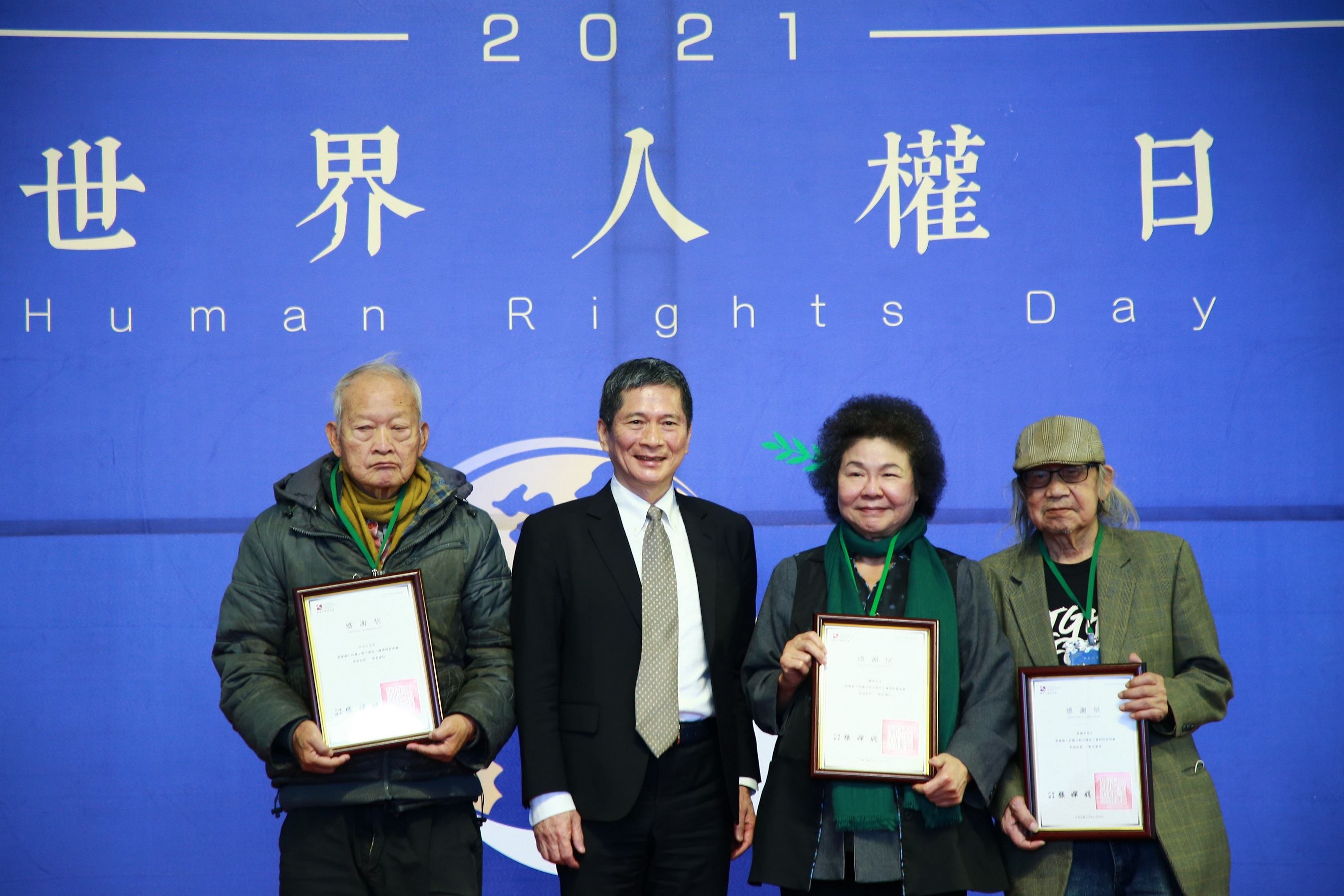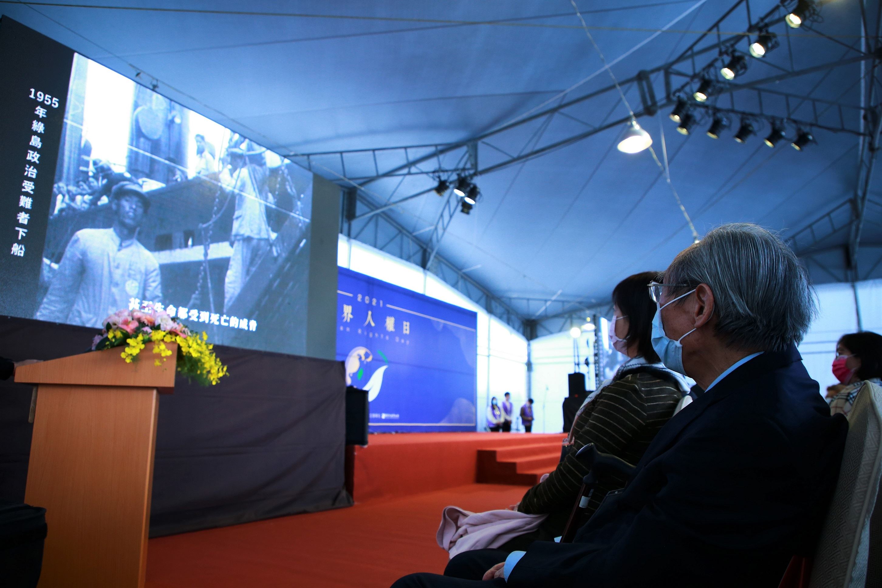 文化部國家人權博物館今(4)日於白色恐怖景美紀念園區大廣場舉辦2021年世界人權日典禮,總統蔡英文、監察院長陳菊、文化部長李永得、文化部政務次長蕭宗煌及李靜慧、國家人權博物館代理館長張嬋娟、國家人權委員會委員高涌誠、葉大華、范巽綠等,以及白色恐怖政治受難者及家屬約200人應邀出席。