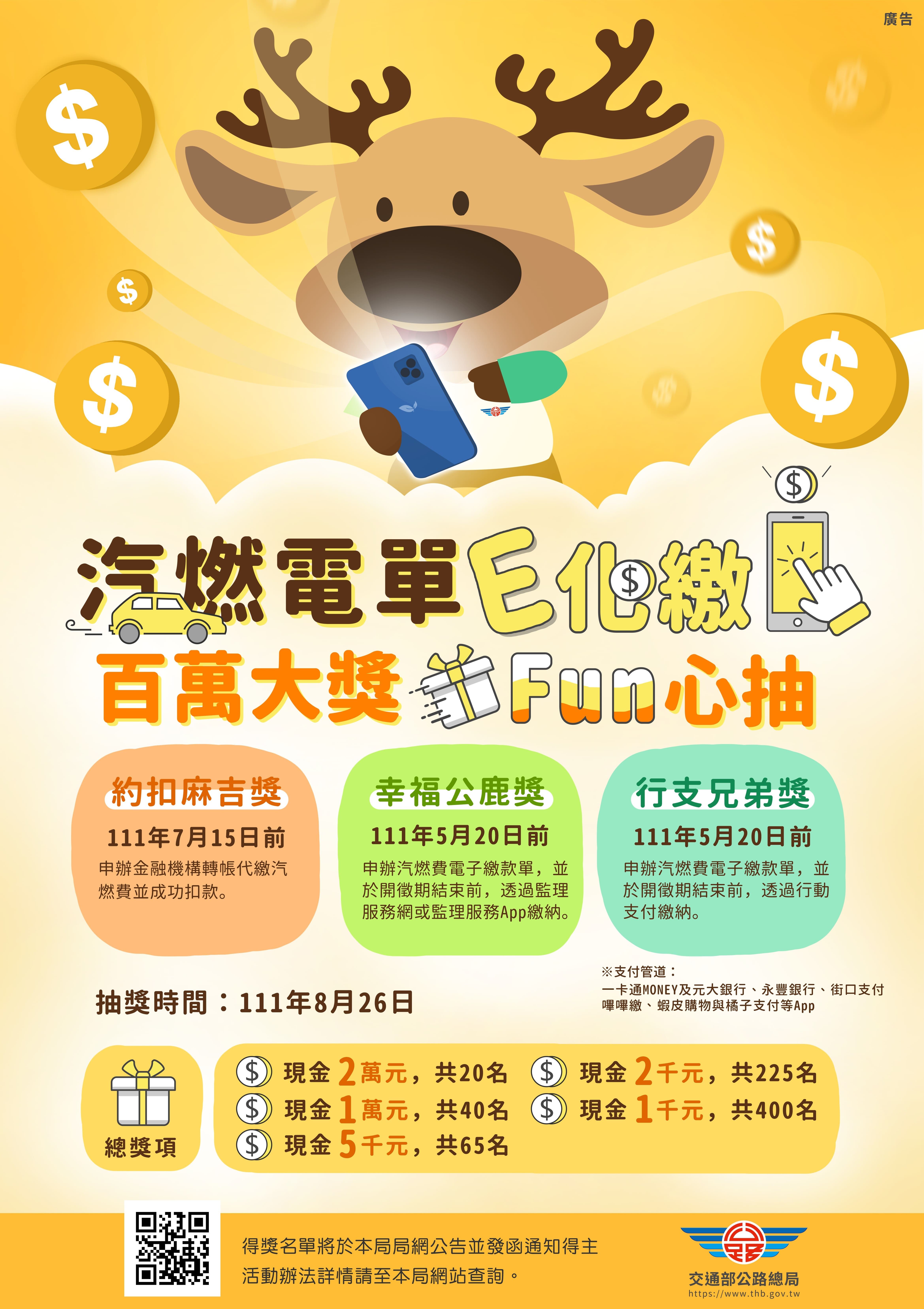交通部公路總局「111年鼓勵繳納汽燃費抽獎活動」。
