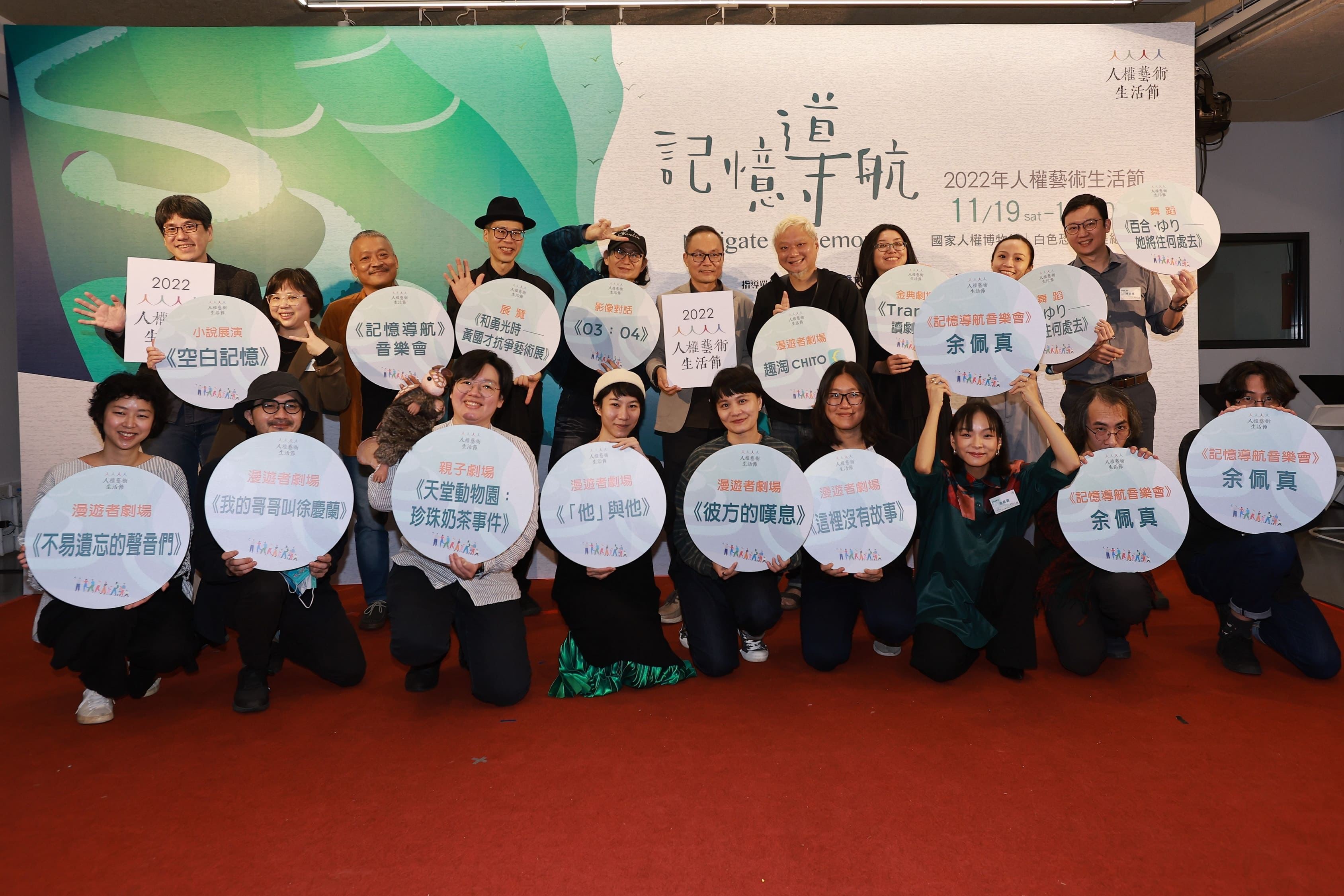 文化部國家人權博物館「2022年人權藝術生活節」邀請詩人暨導演鴻鴻擔任策展人,並邀請多位臺灣與香港的優秀藝術家,策劃音樂、舞蹈、戲劇與親子節目、常態展覽及短片展等系列展演,自11月19日至12月10日於白色恐怖景美紀念園區登場,系列活動更關注香港議題,跨越地域呼應人權的共同價值。今(2)日舉辦宣傳記者會,文化部政務次長李靜慧、國家人權博物館館長洪世芳、策展人鴻鴻、《記憶導航》開幕音樂會策劃馬世芳、臺灣戒嚴時期政治受難者關懷協會榮譽理事長蔡寬裕、理事長陳中統、五十年代白色恐怖案件平反促進會理事長吳建東、臺灣地區政治受難人互助會代表吳俊宏、臺灣二二八關懷總會代表歐陽煇美及各表演團隊代表共同出席。