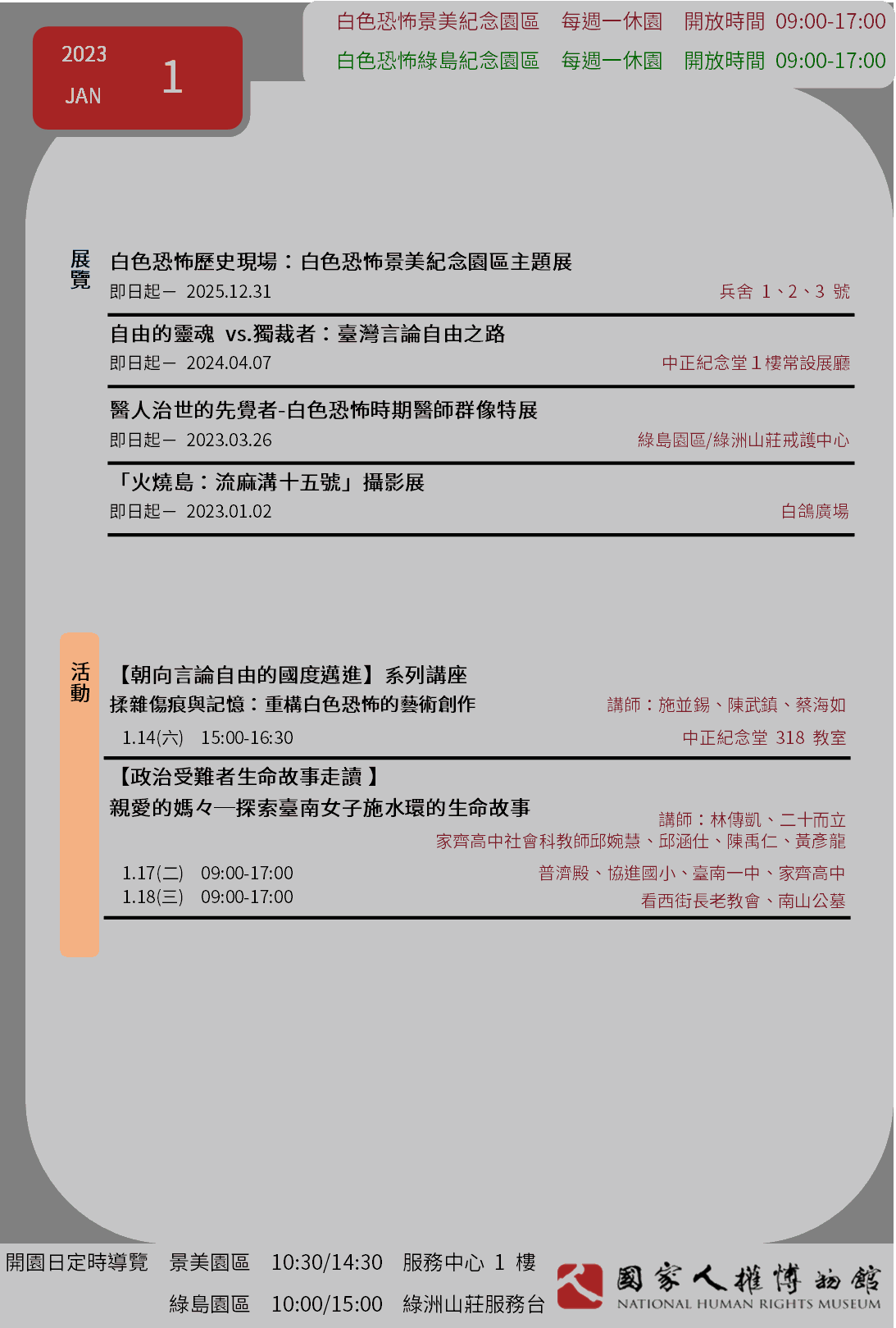 國家人權博物館2023年1月當月活動訊息