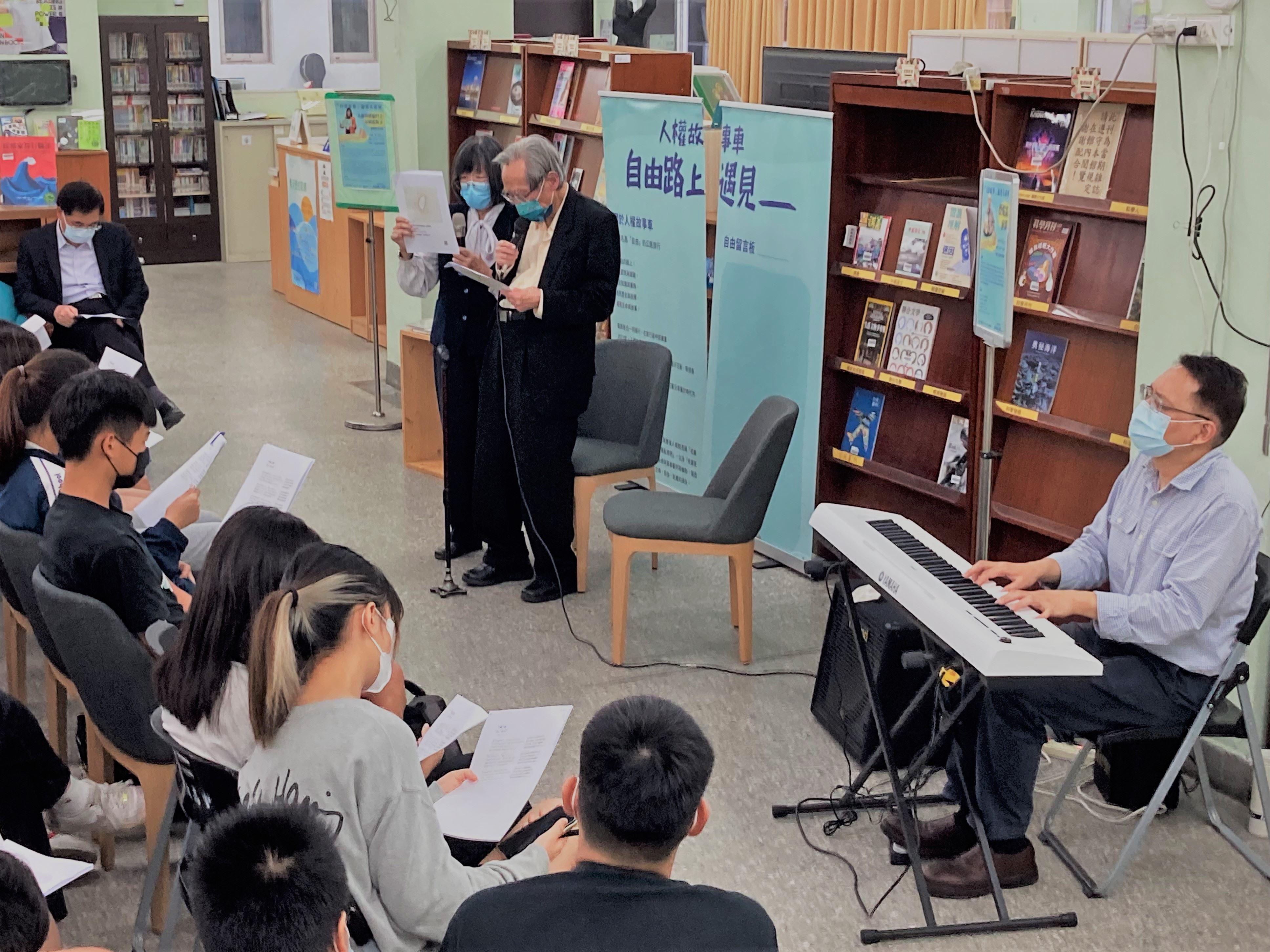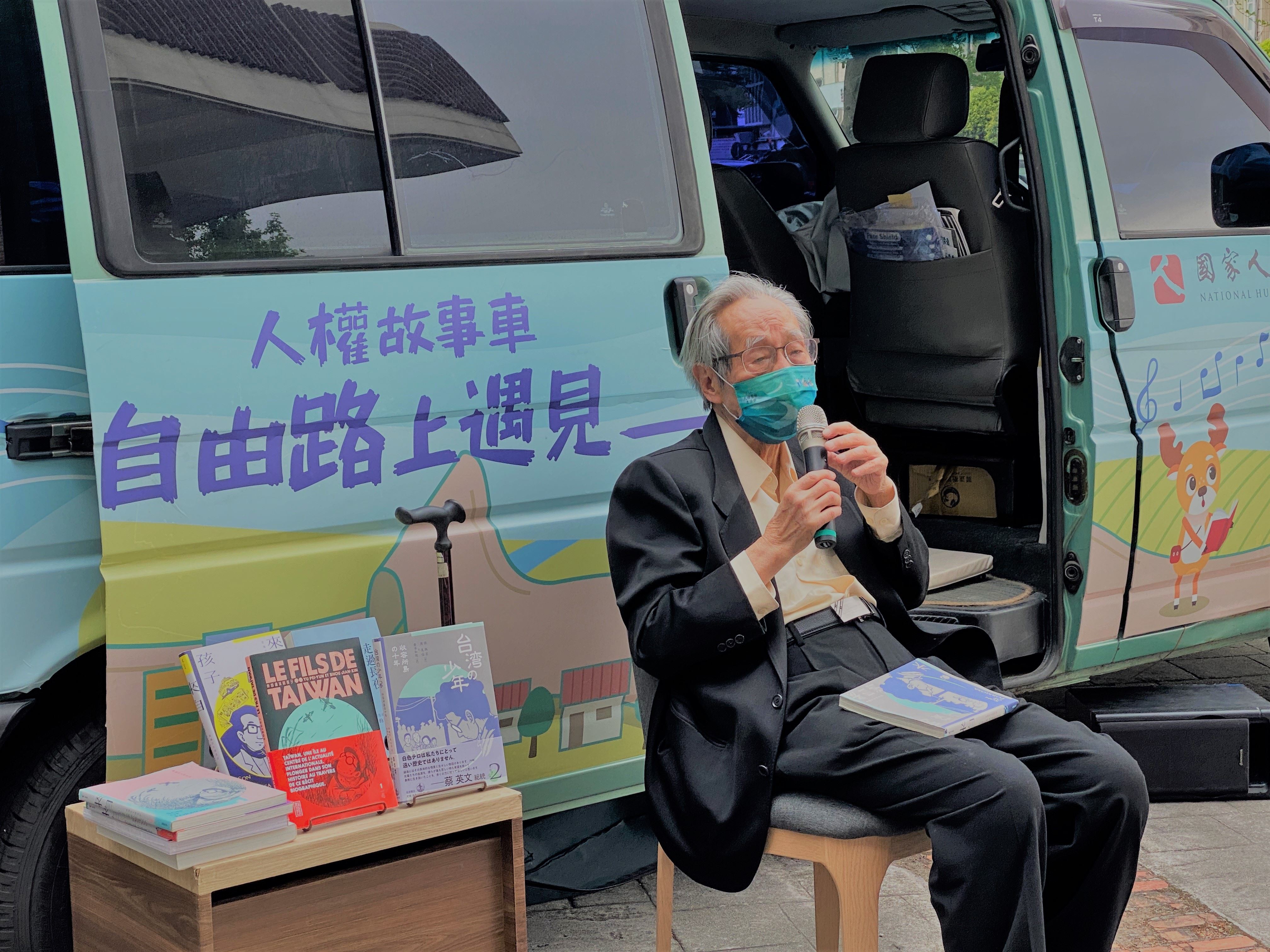 國家人權博物館「人權故事車」巡迴校園邁入第三年,書車不受地域限制,帶著真人圖書的人權故事,自由島讀臺灣人權,今年並融入「島嶼聲耕」音樂敘事,透過口述與音樂旋律交錯,讓不同世代見證前輩共同走過臺灣戒嚴到解嚴的漫漫自由民主路,前輩透過歌謠傳唱,回憶當時遭逢白恐迫害的心境,以歌曲追憶獄中難友永遠的微笑。