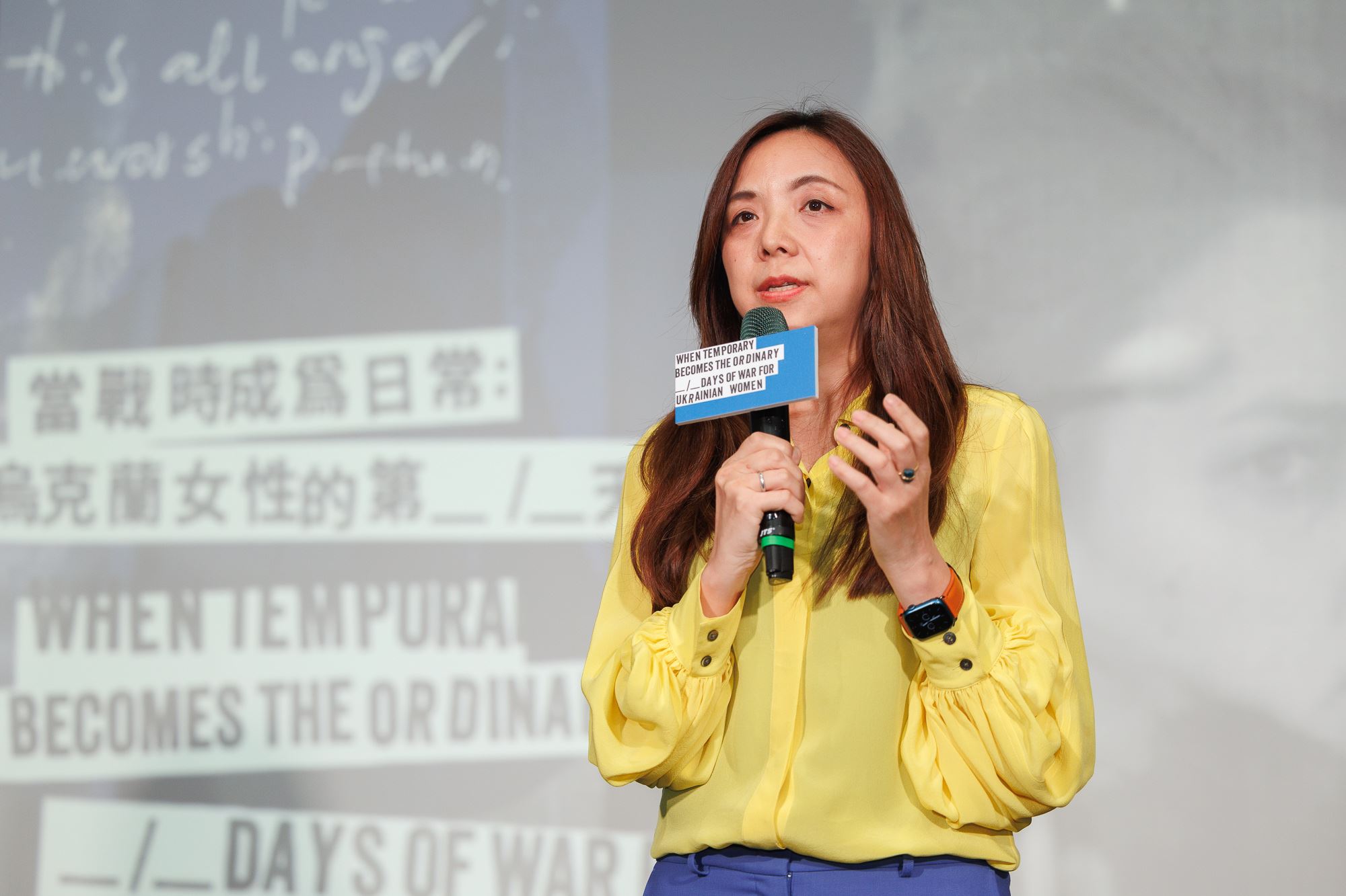 烏克蘭性別博物館館長特蒂亞娜·伊薩耶娃(Tetiana Isaieva)以預錄影片致詞表示,俄烏戰爭大幅改變全世界的生活,該博物館啟動《HERSTORY of the WAR》影像計畫蒐集的故事,記錄下烏克蘭女性被戰爭摧毀的生活下的想法和感受,以及對孩子、生命、烏克蘭的愛。特蒂亞娜感謝人權館的努力,齊心協力呈現戰爭下的可怕事實,呼籲世人不能忘記戰爭是最大的罪惡,民主方能得勝。