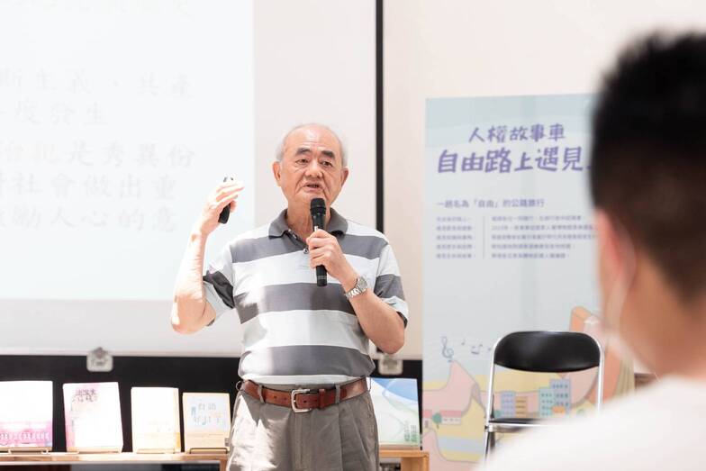 國家人權博物館「2023人權故事車-自由路上」,邀請臺灣語言學專家,同時是白恐受難者的洪惟仁老師,昨(17)日一起前進臺中一中,由前輩講述個人生命史,接著分享戒嚴時代對語言的禁錮,造成臺灣文化的衝擊,讓青年學子認識臺灣從威權走向民主化,生活文化的重創與重建。