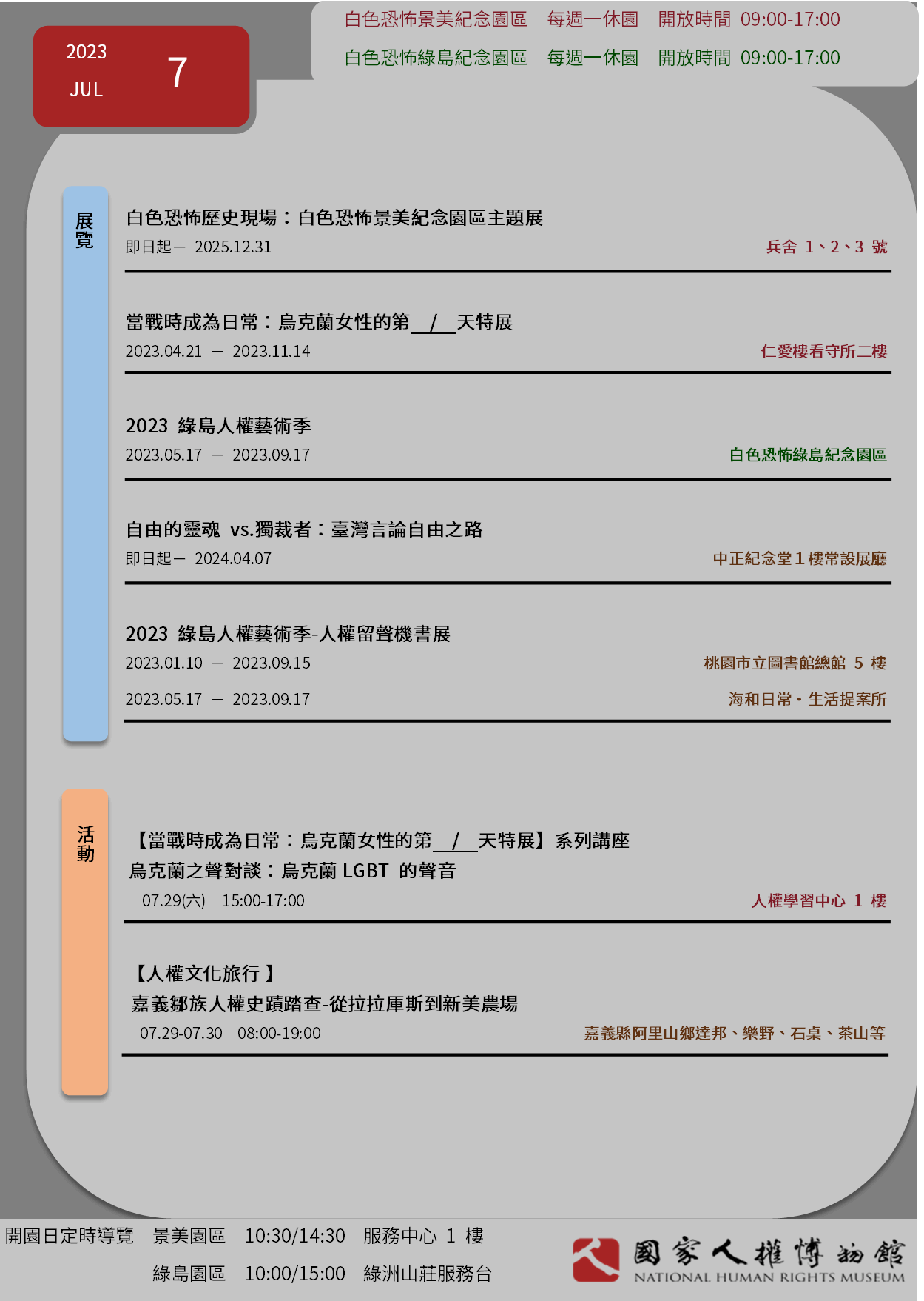國家人權博物館2023年7月當月活動訊息