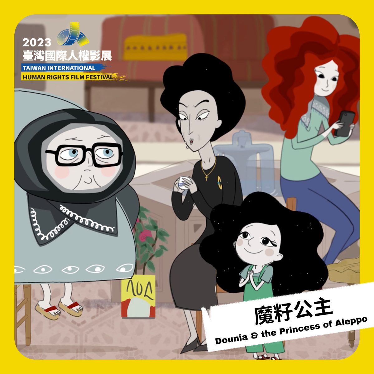 「煙硝離散—戰爭與人權」單元另外也選映敘利亞裔加拿大導演瑪麗亞‧札里夫與法國導演安德烈‧卡迪共同合作的動畫《魔籽公主》,以魁北克法語旁白講述在敘利亞戰火的威脅下,一家三代如何在遭遇政府及多方軍事勢力阻擾時逢凶化吉,最終抵達如天堂般的新家園;柏林影展金熊獎得主吉安弗蘭‧柯羅西的《戰地夜曲》,故事場景橫跨敘利亞、伊拉克、庫德斯坦族及黎巴嫩邊界,將戰火煙硝下的日常群像,如慢板詩歌呈現於世人眼前。