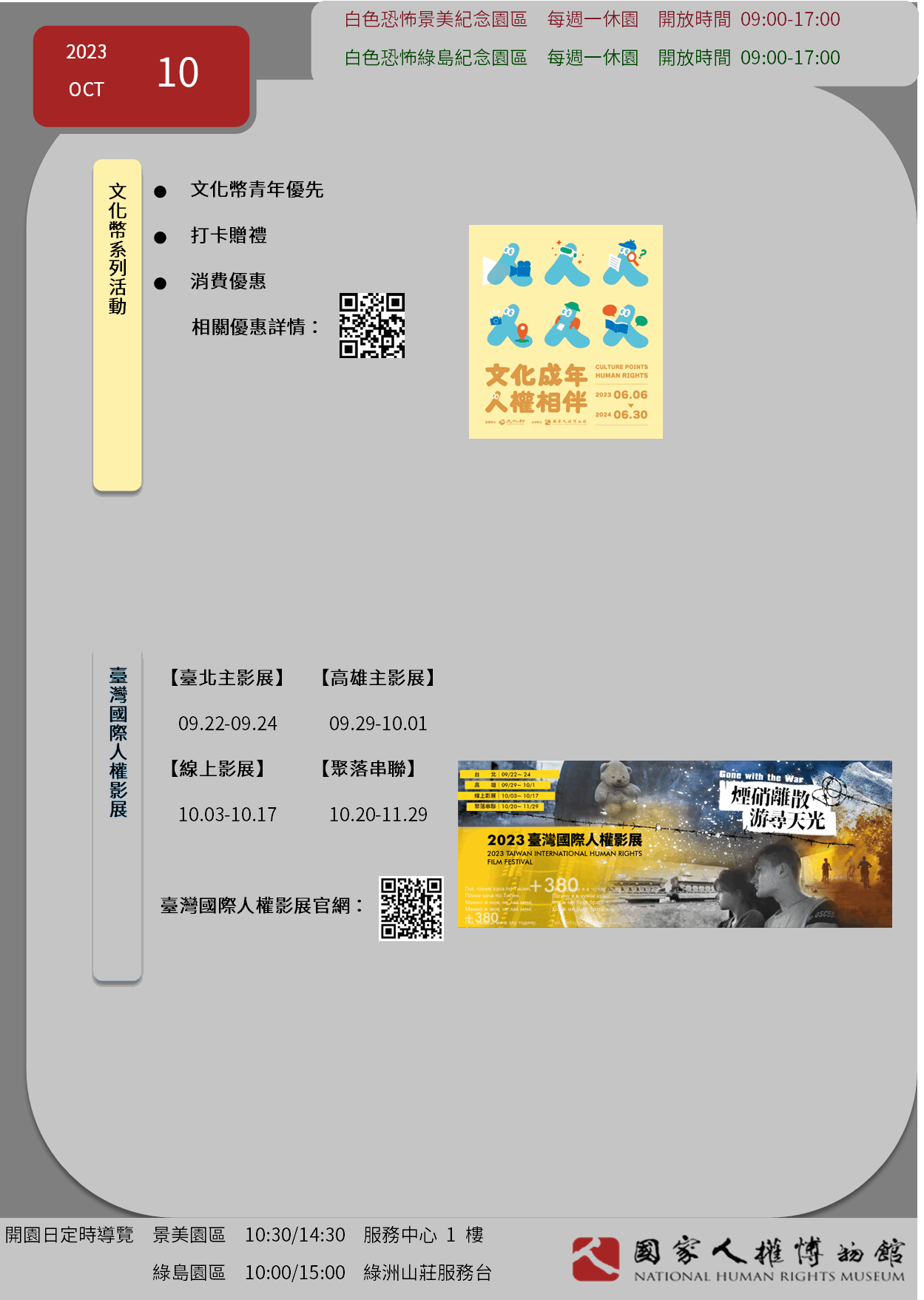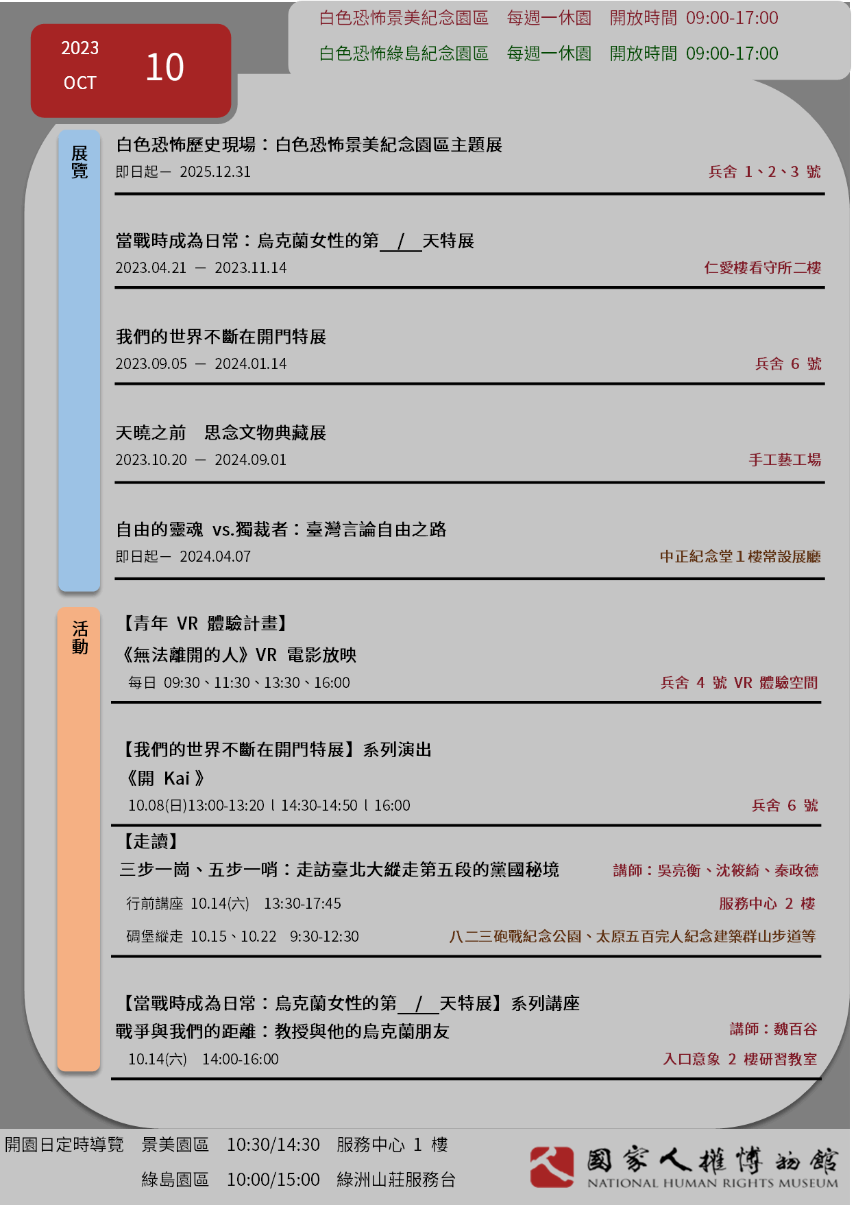 國家人權博物館2023年10月當月活動訊息
