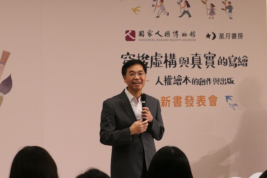 洪世芳館長表示,人權是普世的價值,如何以多元形式推廣人權的概念與價值,一直是人權館成立以來的重要任務,舉凡藝術節、影展、進到校園舉辦真人圖書館等活動,皆期促進臺灣社會對人權議題的理解與討論;而迄今舉辦4屆的「畫話:一座島嶼的故事」人權教育繪本工作坊更是推廣人權教育的重要一環,累積近50件繪本創作成果,日益吸引大眾的關注,並引頸期盼成果能順利出版。洪世芳館長感謝所有投入《穿梭虛構與真實的寫繪-人權繪本的創作與出版》的作者們,能進一步地將議題型繪本的創作與出版思考,轉化為淺顯易懂且實用的文章,開啟不同年齡階層對於人權概念的認識,刺激更多繪本工作者投入創作。