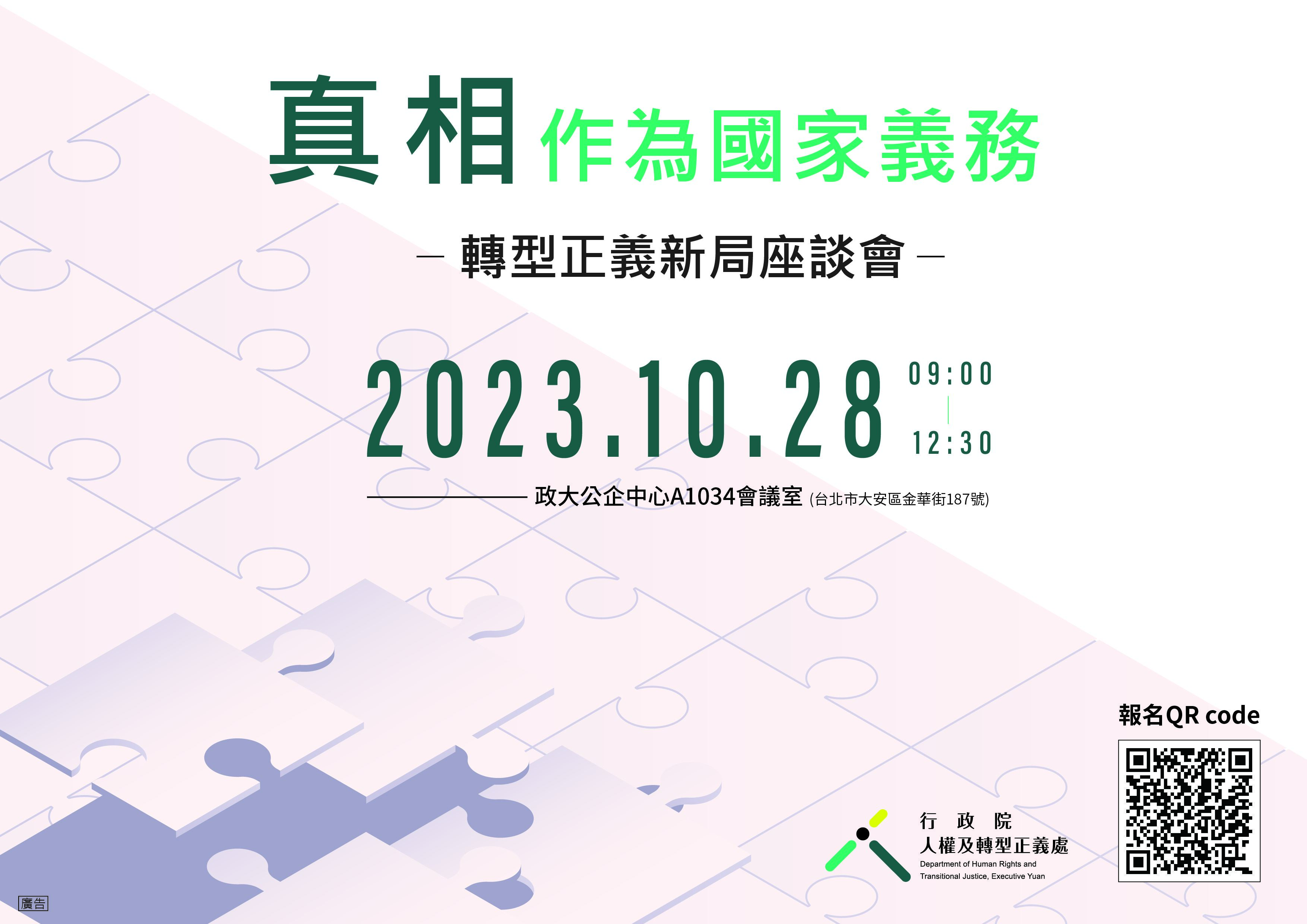 行政院「人權及轉型正義處」辦理「真相作為國家義務:轉型正義新局座談會」,歡迎踴躍報名