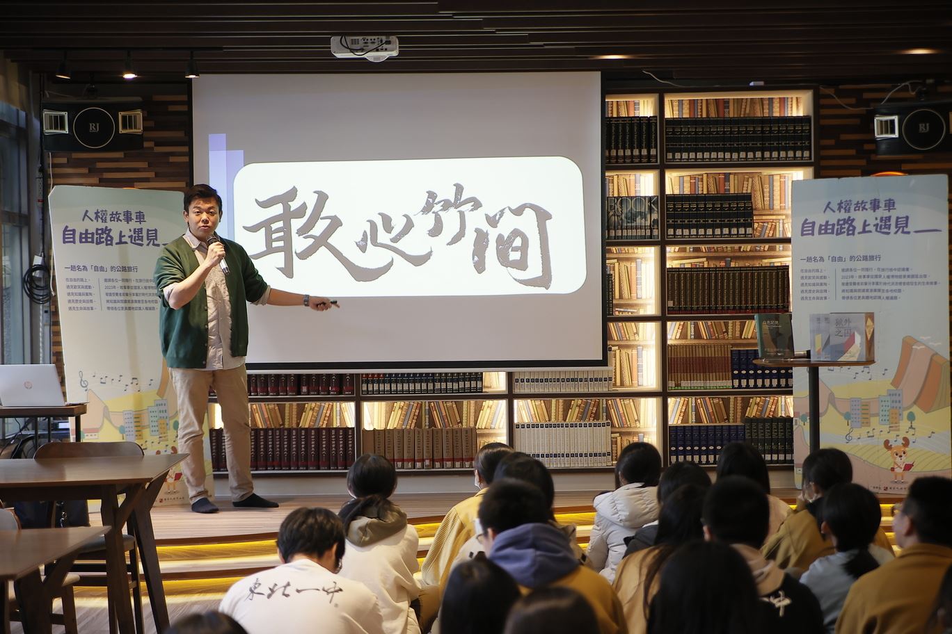 國家人權博物館「2023人權故事車-自由路上」前往宜蘭羅東高中,12月26日真人圖書講座邀請「羅東紙廠案」政治受難者簡文憲前輩之孫、現為「大硯劇團」藝術總監簡嘉彥,向師生分享追尋祖父簡文憲在白色恐怖時期受難的生命故事,以及轉化家族蒙難的歷史成為藝術創作的心路歷程。