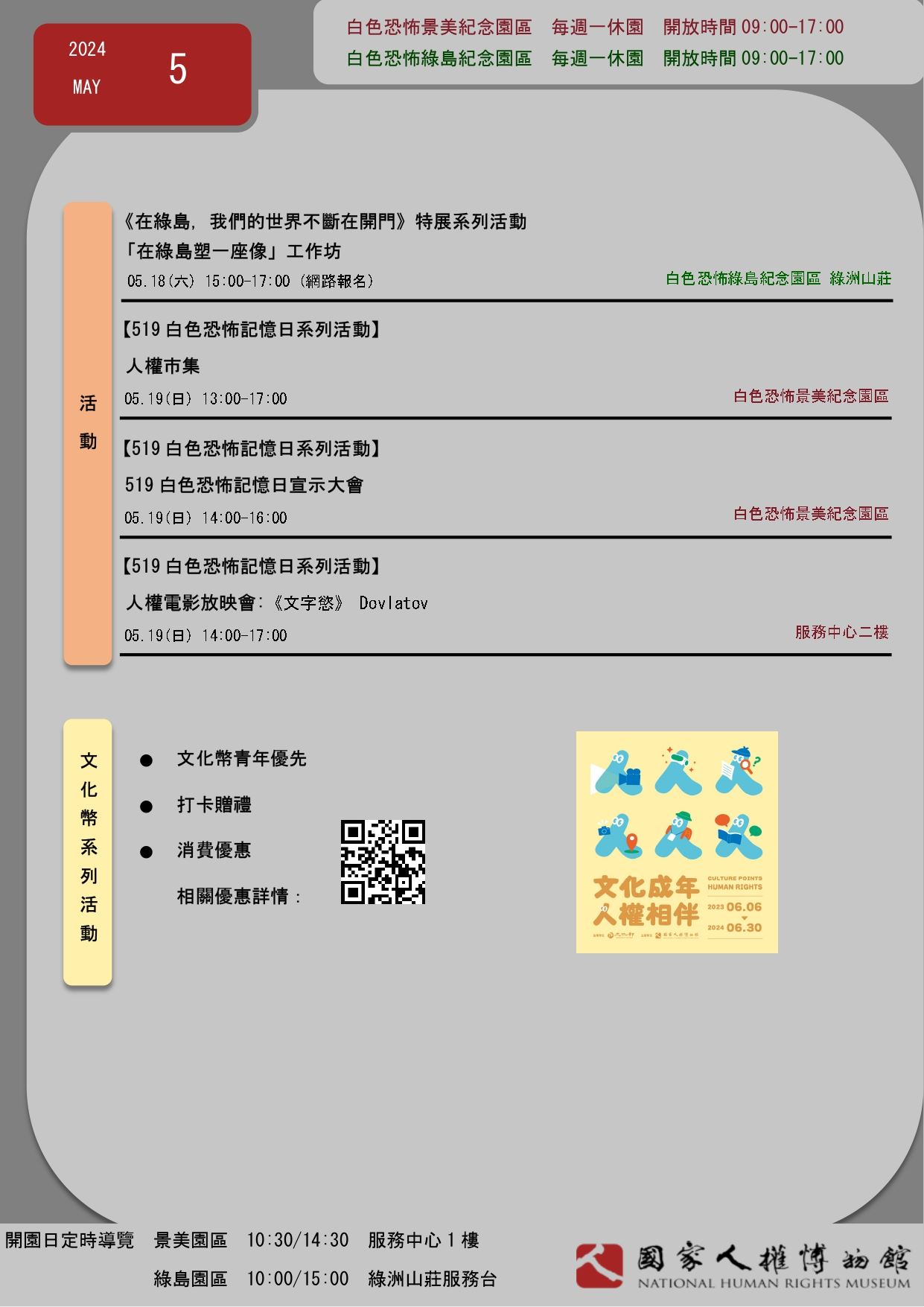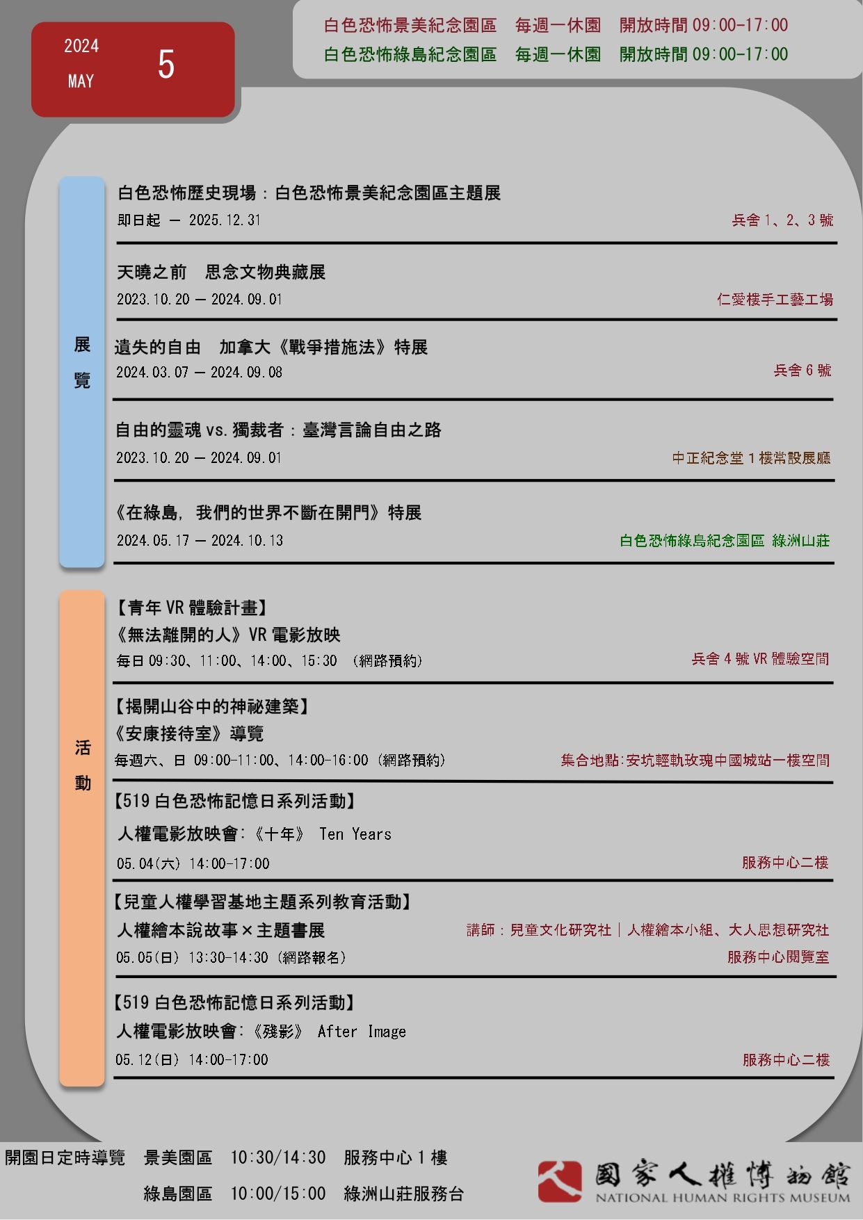 國家人權博物館2024年5月當月活動訊息