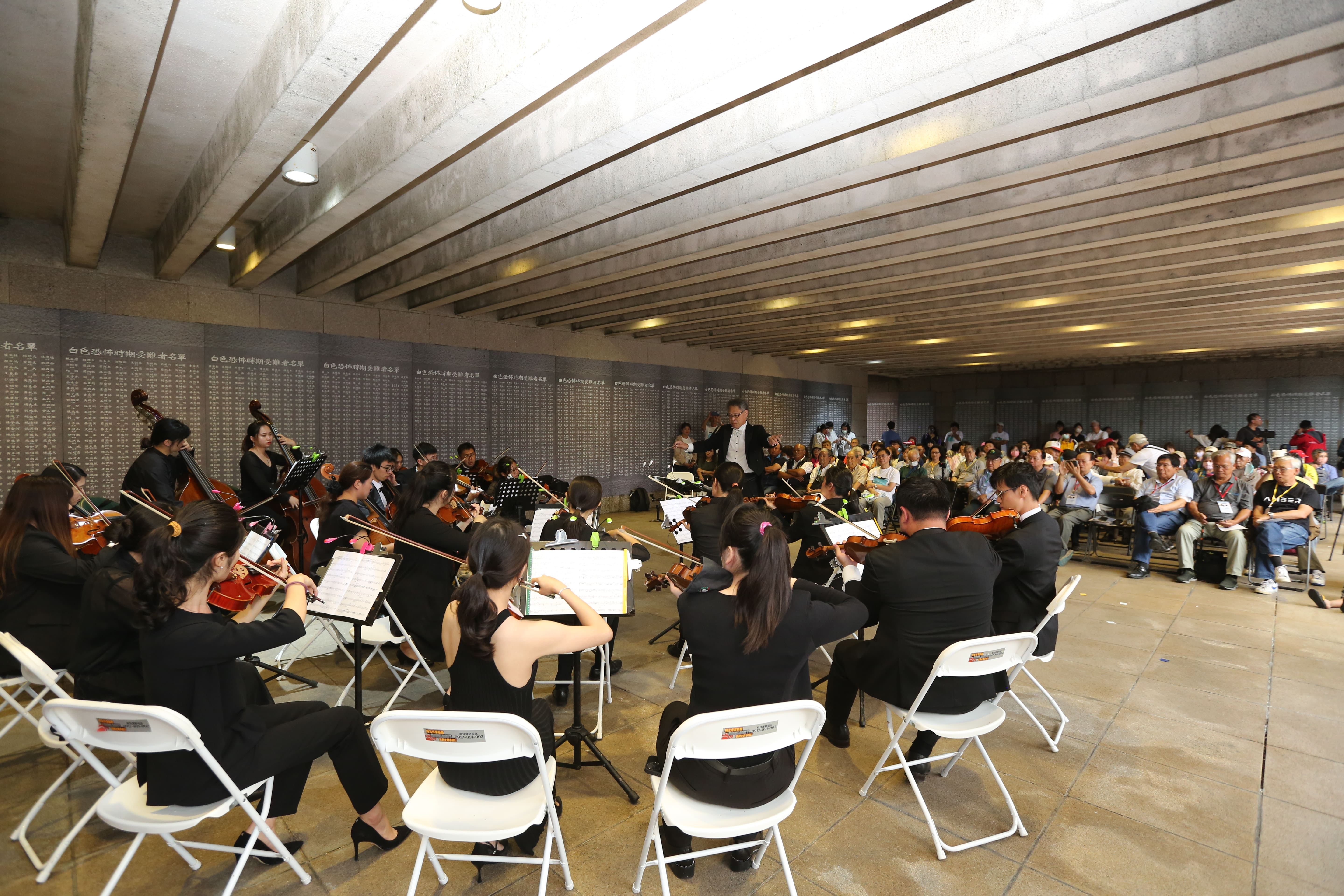 獻花儀式後,眾人轉往人權紀念公園參加《綠島人權音樂會》。音樂會邀請在地的綠島國小幼兒園開場演出〈綠島的孩子們〉,充滿活力的小朋友展現飽滿綠島在地風情的舞蹈表演,表演道具則是全園師生運用環保素材共同設計製作;接續來自臺中霧峰NTSO臺灣青年交響樂團弦樂團演出,特別挑選受難者耳熟能詳且富有臺灣元素的音樂,包含〈臺灣音樂百年組曲〉、〈安平追想曲〉、〈黃昏愁〉,以及曾是受難者為難友送行的歌曲〈千風之歌〉。演出最後,在NTSO青年弦樂團的伴奏下,由受難者陳欽生與簡中生共同領唱〈綠島小夜曲〉,現場在綠島小夜曲歌聲環繞下,象徵曙光照拂眾人,帶來溫暖。