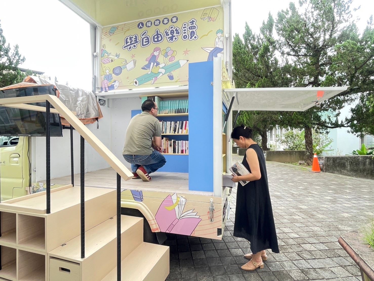 「2024人權故事車」本次前進南投埔里暨大附中,特別以人權館出版企劃「白恐綠島」和「白恐文學」為主題,現場帶來包含《綠島百事:火燒島十一年》、《臺灣白色恐怖散文選》、《臺灣白色恐怖小說選》以及以政治暴力為主題的世界文學。人權館期望藉此引導學生思索威權統治對臺灣社會的深遠影響,並進一步關切人權議題、落實人權理念。