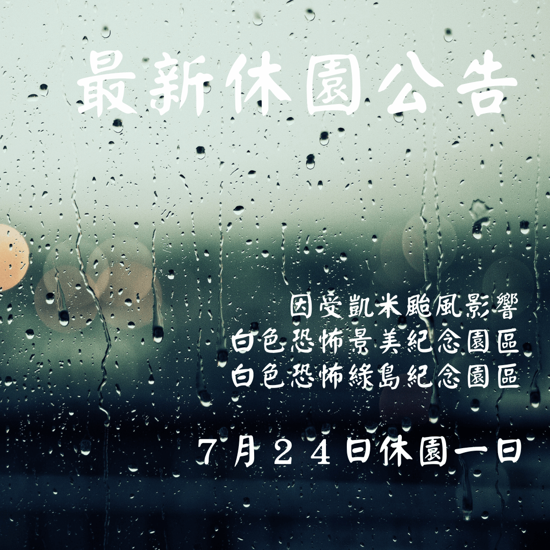 【7月24日颱風園區公告:景美園區、綠島園區皆休園一日!】