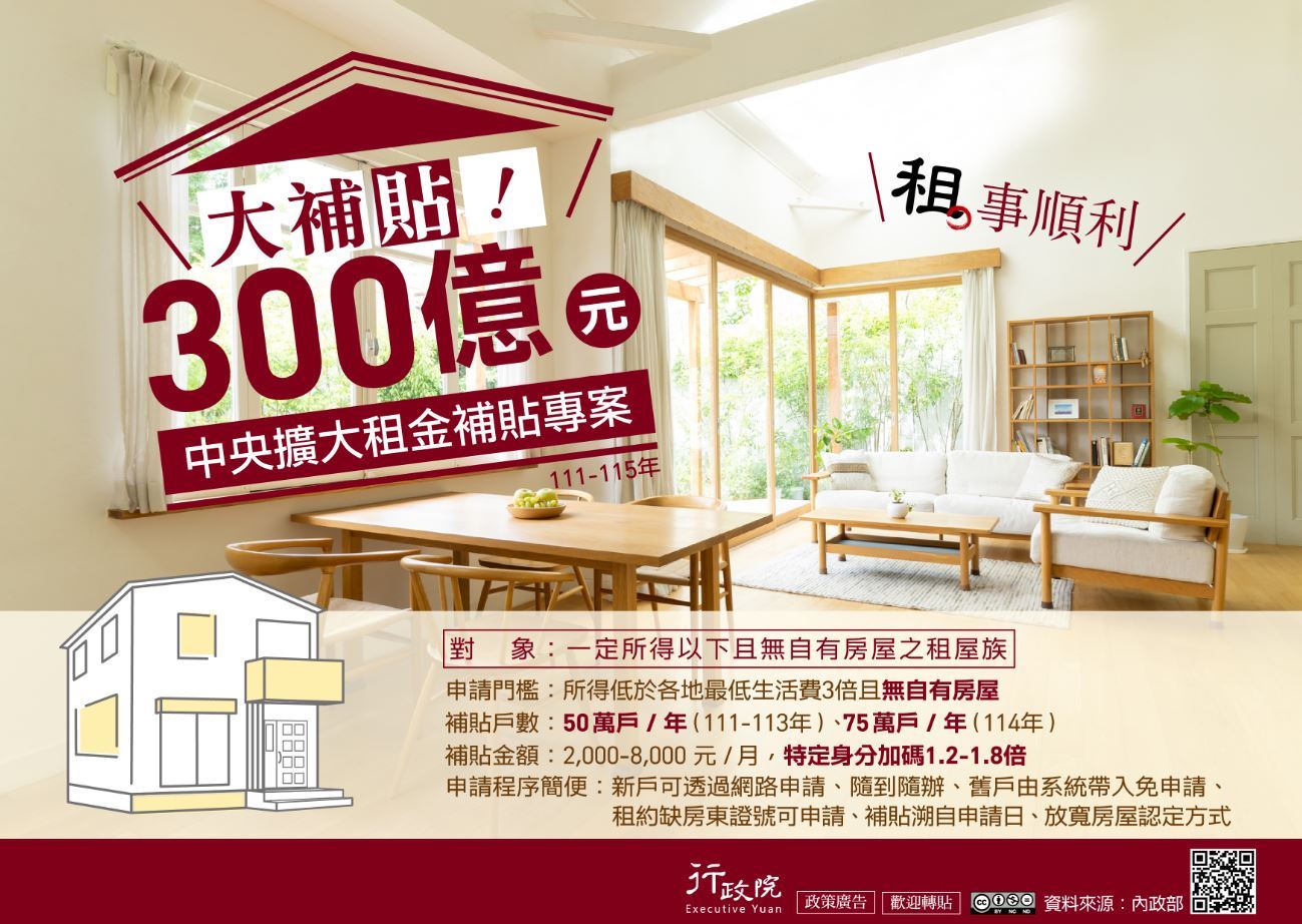 有關「300億元中央擴大租金補貼專案」政策,歡迎參考!