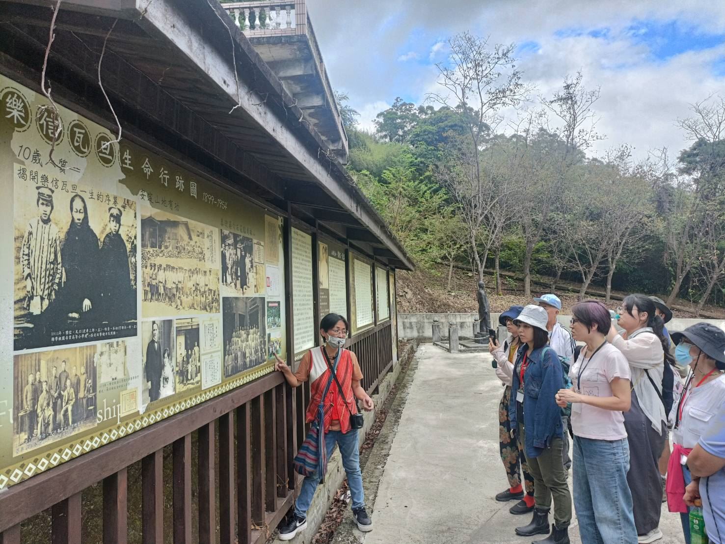 為期一天的踏查活動走訪忠魂碑、樂信瓦旦紀念公園及大豹社群故事館,帶領民眾認識大豹社的歷史、文化,以及與日本政府、國民政府之間的互動關係,從而理解樂信.瓦旦對於收復大豹社群土地的理想與堅持。本次蹅查由林東暭老師全程陪同,他提到自己的堂伯父林昭光及二伯父林茂秀受到樂信.瓦旦被誣陷為「匪諜案」牽連,國民政府僅以「知情不報」關押林茂秀長達二年,其父親林昌運(樂信.瓦旦小兒子)雖以優秀成績畢業於高雄醫學院的山地醫學專班,但卻無法回到桃園部落服務,而被迫遷離至新北市烏來執業與定居。林沛緹老師(樂信.瓦旦曾外孫女)也提到樂信.瓦旦被槍決後,其長子林茂成帶著骨灰回部落,家產全被沒收,並被迫帶著年幼的弟妹搬離部落。