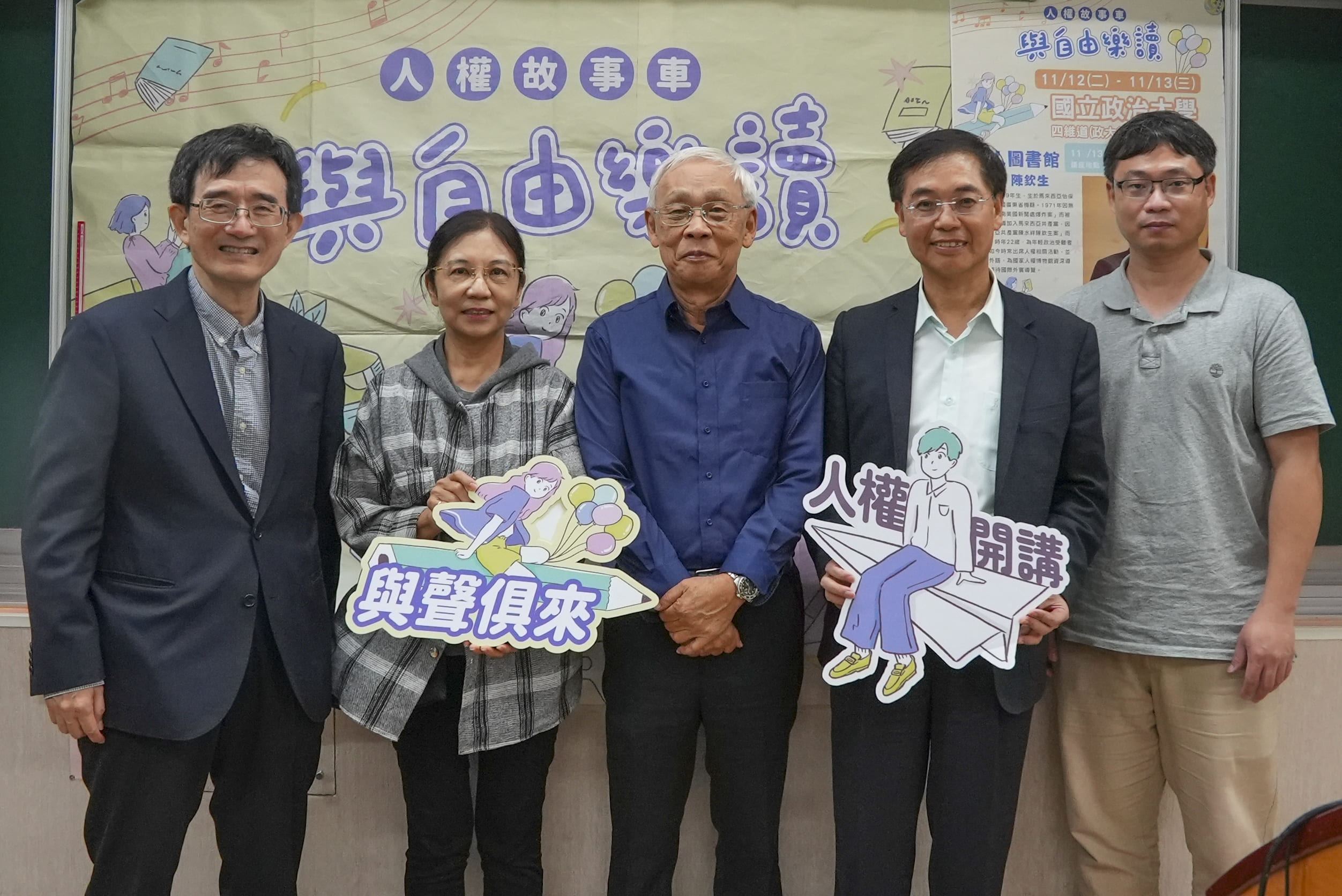 由國家人權博物館主辦的「2024人權故事車-與自由樂讀」校園巡迴活動,11月12日至13日開進國立政治大學,吸引不少師生前往翻閱豐富的人權主題選書;13日並舉辦真人圖書館講座,邀請政治受難者前輩陳欽生主講,並由政治大學臺灣史研究所薛化元教授擔任與談人,以互動提問方式,帶領現場師生從陳欽生前輩的生命經驗,見證臺灣人權發展的歷史。