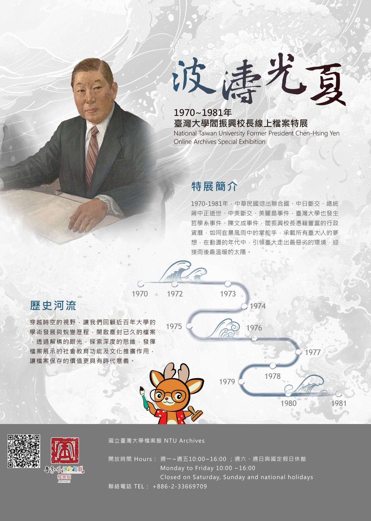 國立臺灣大學推出「波濤光夏-臺灣大學閻振興校長線上檔案特展」,歡迎線上參觀