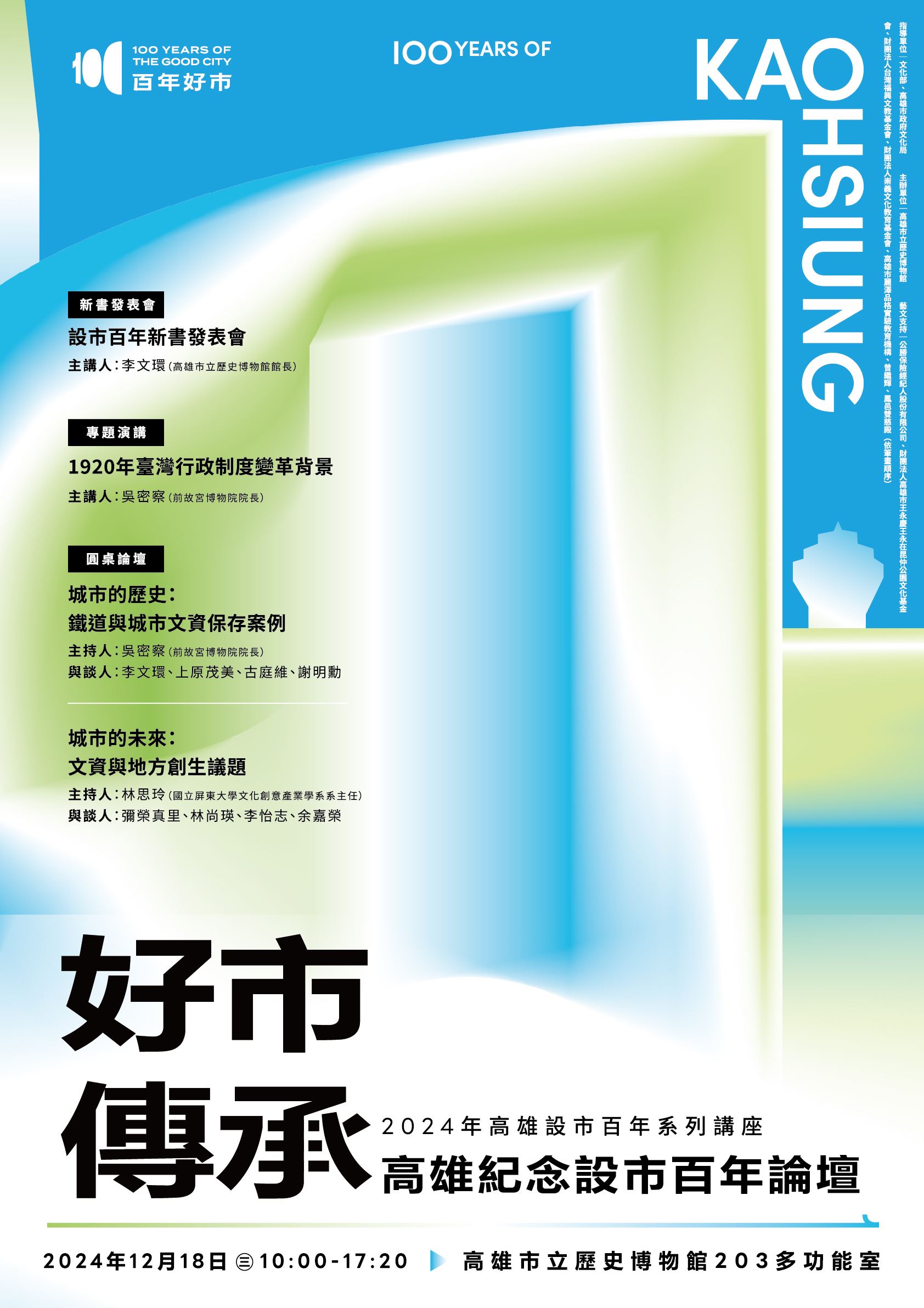 2024年恰逢高雄設市一百年,為回顧高雄城市發展軌跡,發揮高雄市立歷史博物館研究高雄歷史之使命,舉行紀念設市百年論壇,重新梳理及補述屬於高雄百年間的城市記憶。