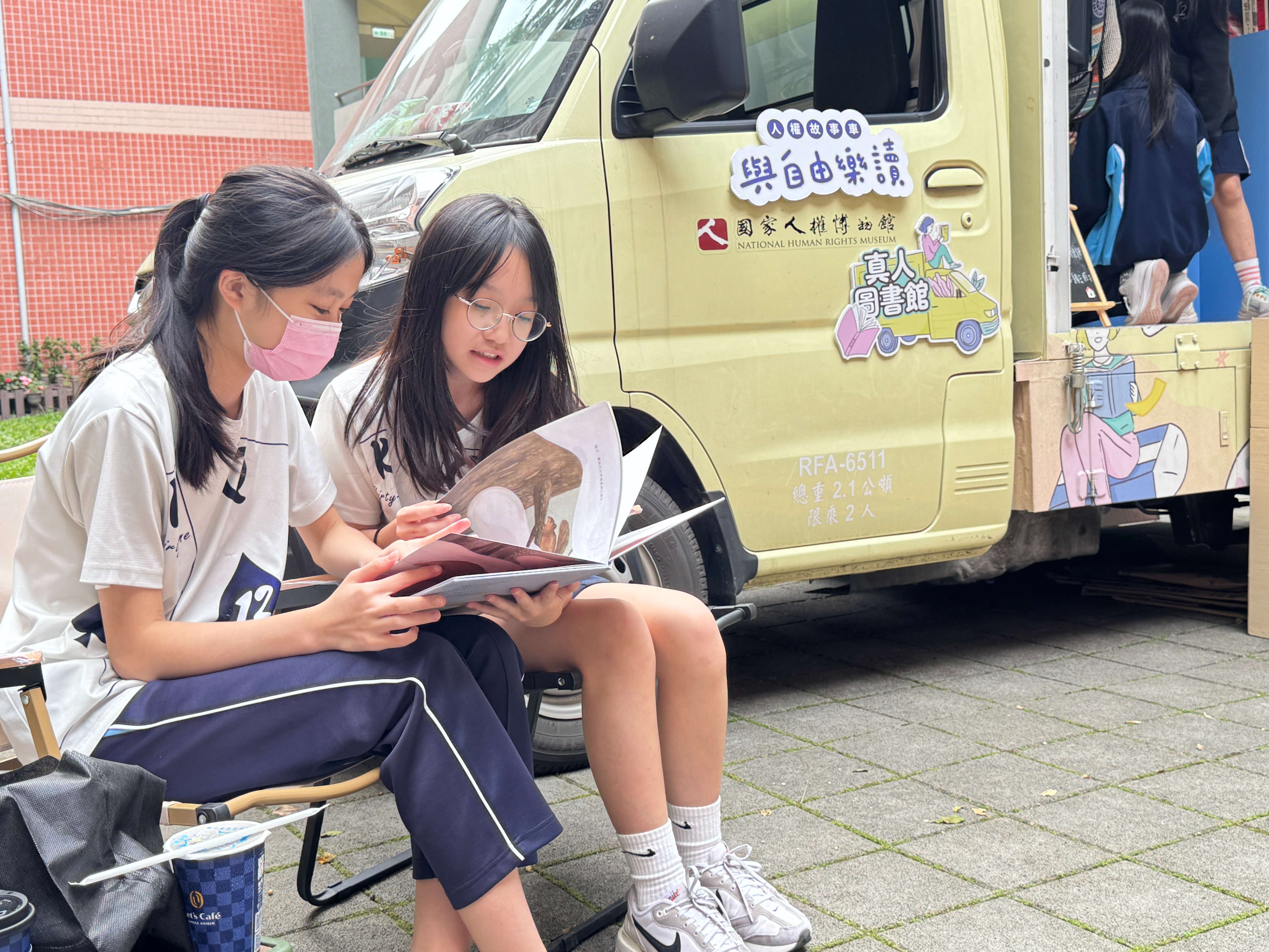 2024人權故事車校園巡迴活動自5月開始,搭配真人圖書館等生動多元的活動,前往北、中、南、東各級學校推廣人權教育。本次以兒少人權為主題,精選《我是馬拉拉》、《麥提國王執政記》、《來自清水的孩子》、《流麻溝十五號》等適合青少年閱讀的書籍,搭配戶外風格的空間布置,加上故事車亮眼的嫩黃車體設計,吸引不少師生駐足參觀、自在閱讀,現場也擺放帆布袋與磁鐵書籤等文創商品,供民眾選購。