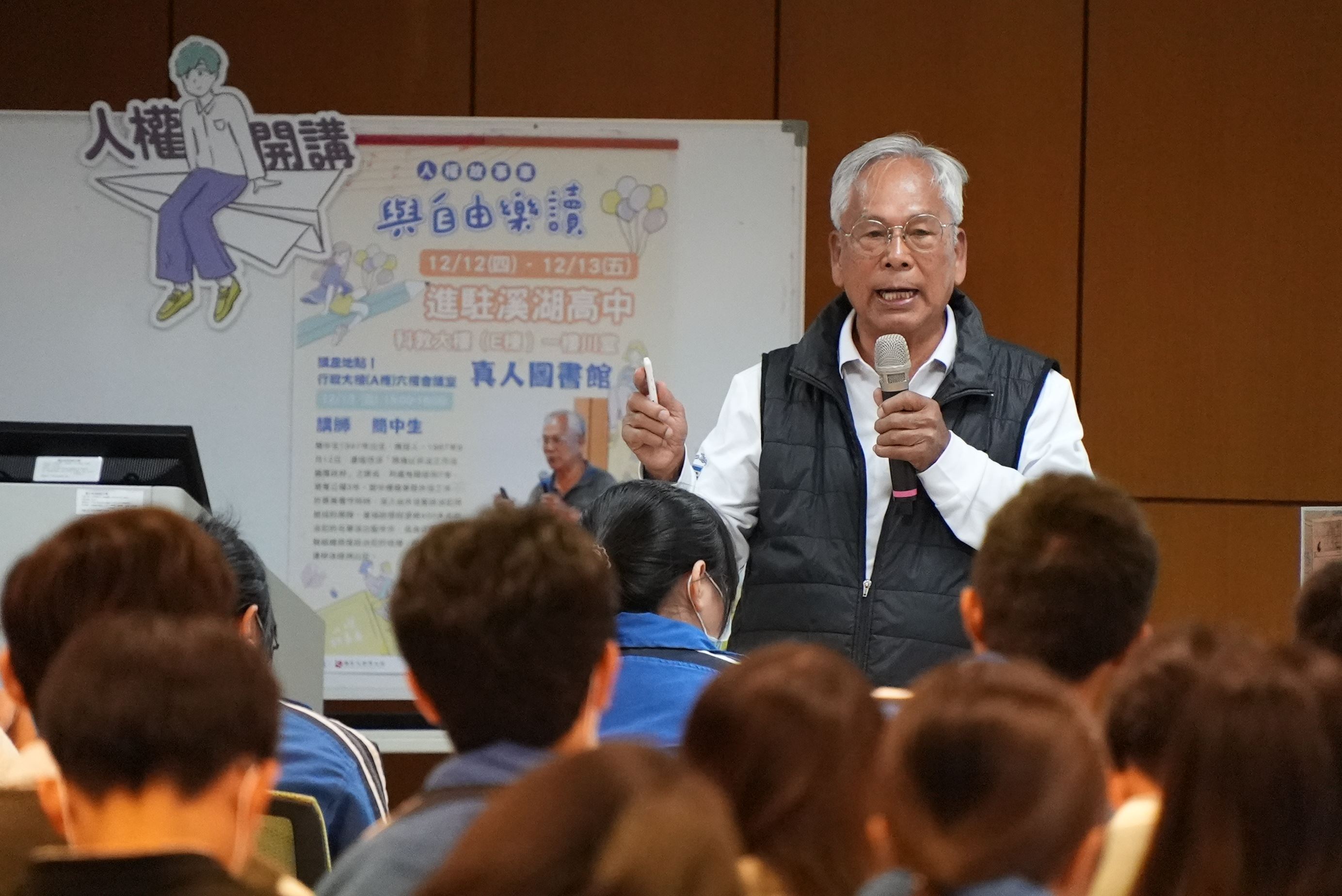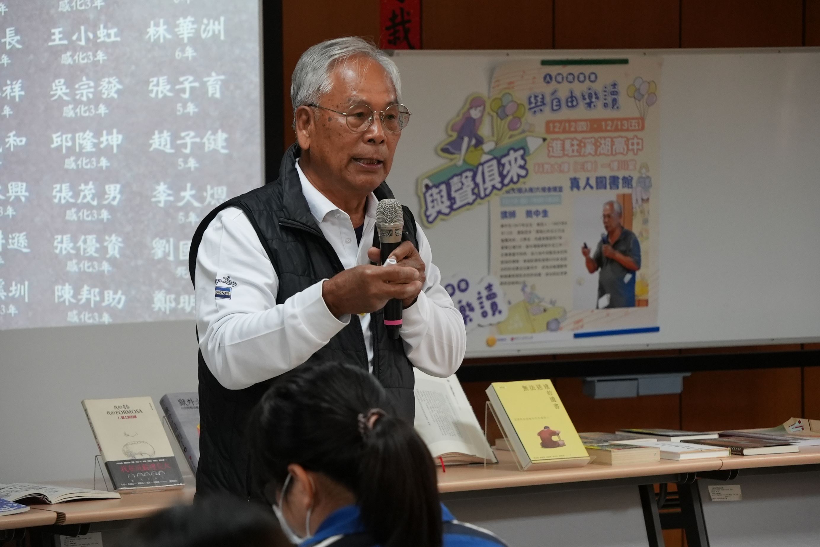 國家人權博物館「2024人權故事車-與自由樂讀」於12月12日至13日前進彰化溪湖高中,以「白恐綠島」和「白恐文學」作為主題,滿載《火燒島流麻溝十五號》、《白色記憶》、《走過長夜》等人權議題選書,13日並舉辦真人圖書館講座,邀請白色恐怖受難者簡中生前輩,分享他的白色恐怖經歷及出獄後屢遭挫折的生命故事,引領師生們認識課本以外的白恐歷史,反思人權的珍貴。