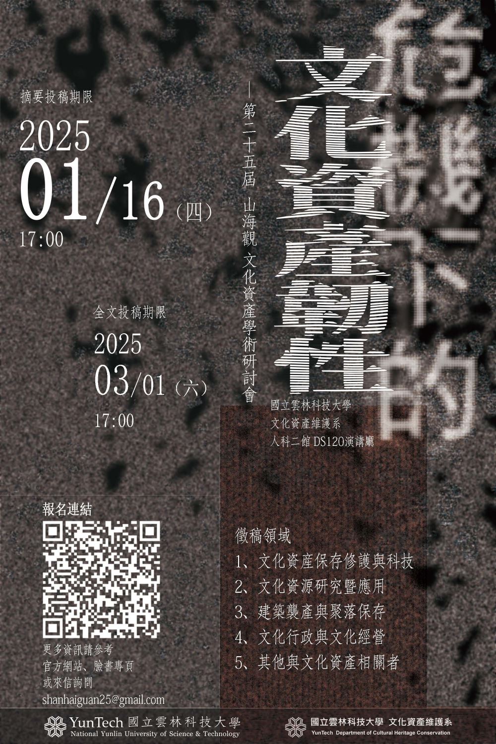 雲科大文資系舉辦「第25屆山海觀文化資產學術研討會—危機下的文化資產韌性」,歡迎踴躍報名