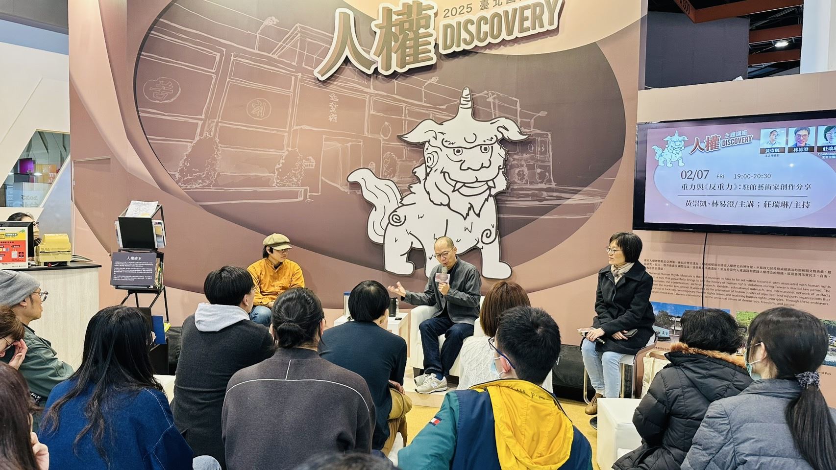 人權館表示,書展講座昨(6)日與今(7)日分別由繪本作者陳威諺與插畫創作者太迪了分享新作《發現》及《牆外的牆》,以及小說家黃崇凱與歷史工作者林易澄對談其駐館計畫孕育之作《反重力》,吸引許多愛好文學與繪本的民眾駐足聆聽。