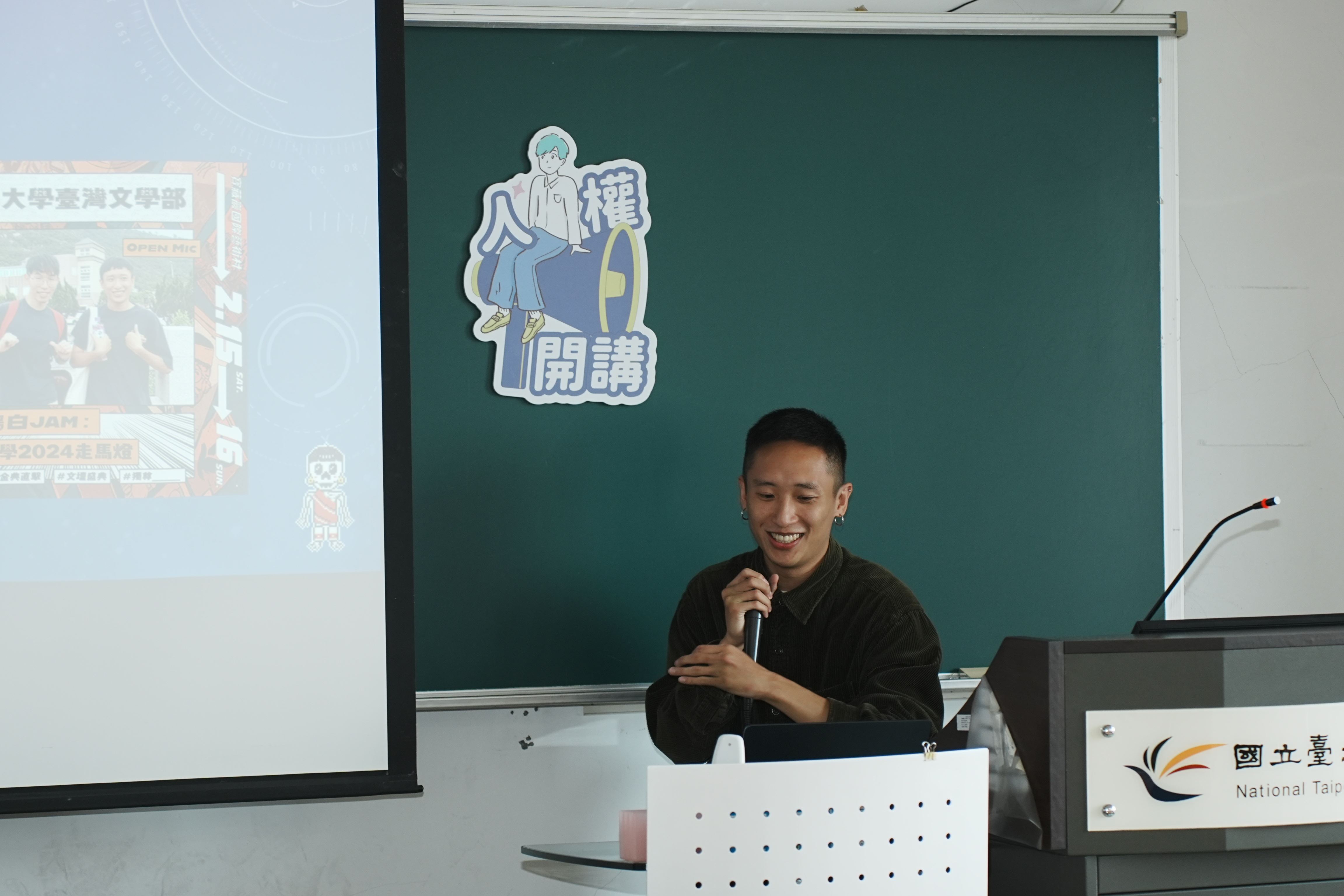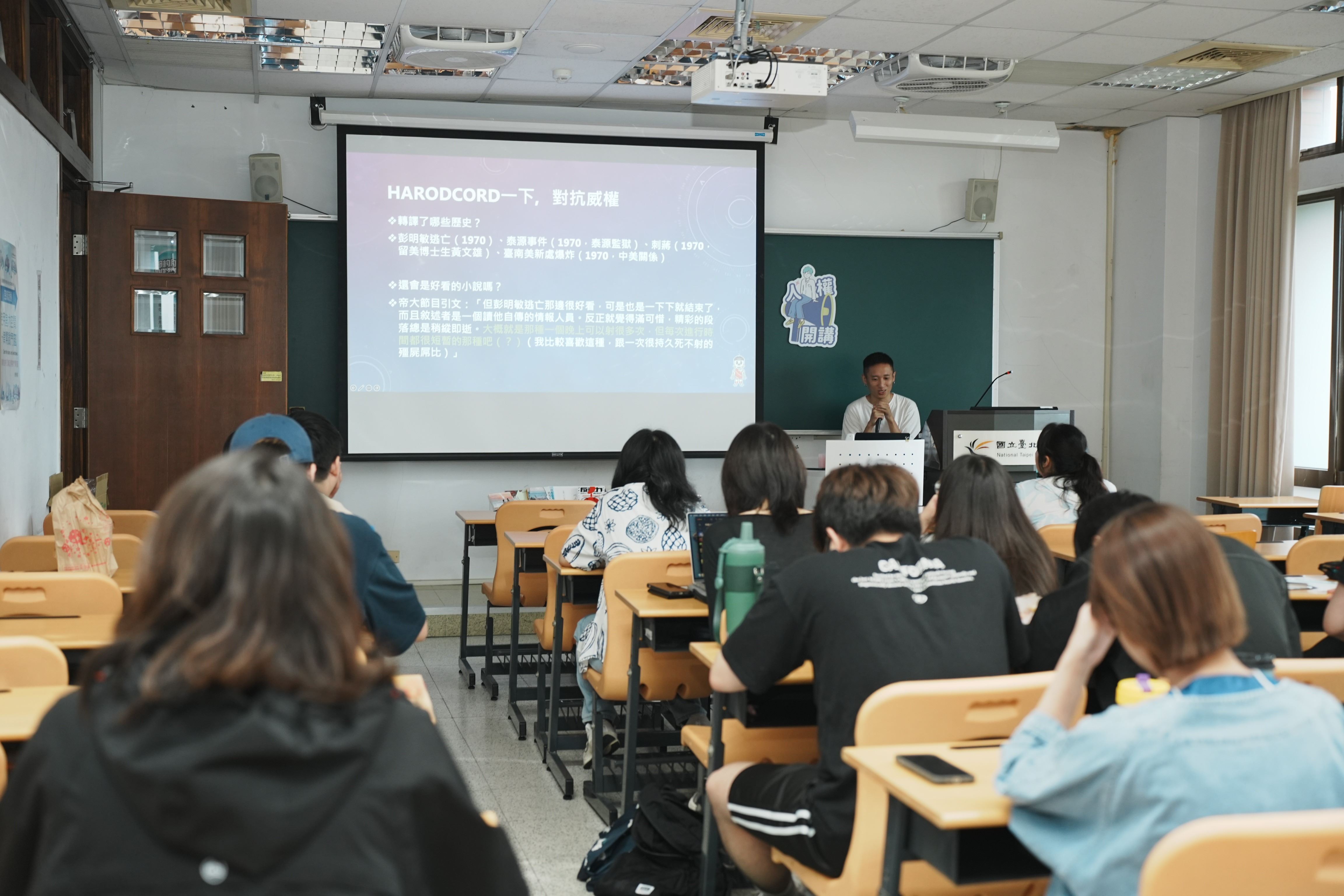 講座上,江炫霖帶領學生穿梭於臺灣文學史,引介認識積極參與人權及社會運動的作家,如楊逵、姚嘉文與黃崇凱等。江炫霖以楊逵被囚禁於綠島期間所撰寫的《綠島家書》為例,引導學生透過家書裡質樸而深情的文字,看見楊逵對於家人的思念與對自由的渴望,感受到在威權統治下,個體如何藉由文學保存尊嚴、抵抗遺忘。