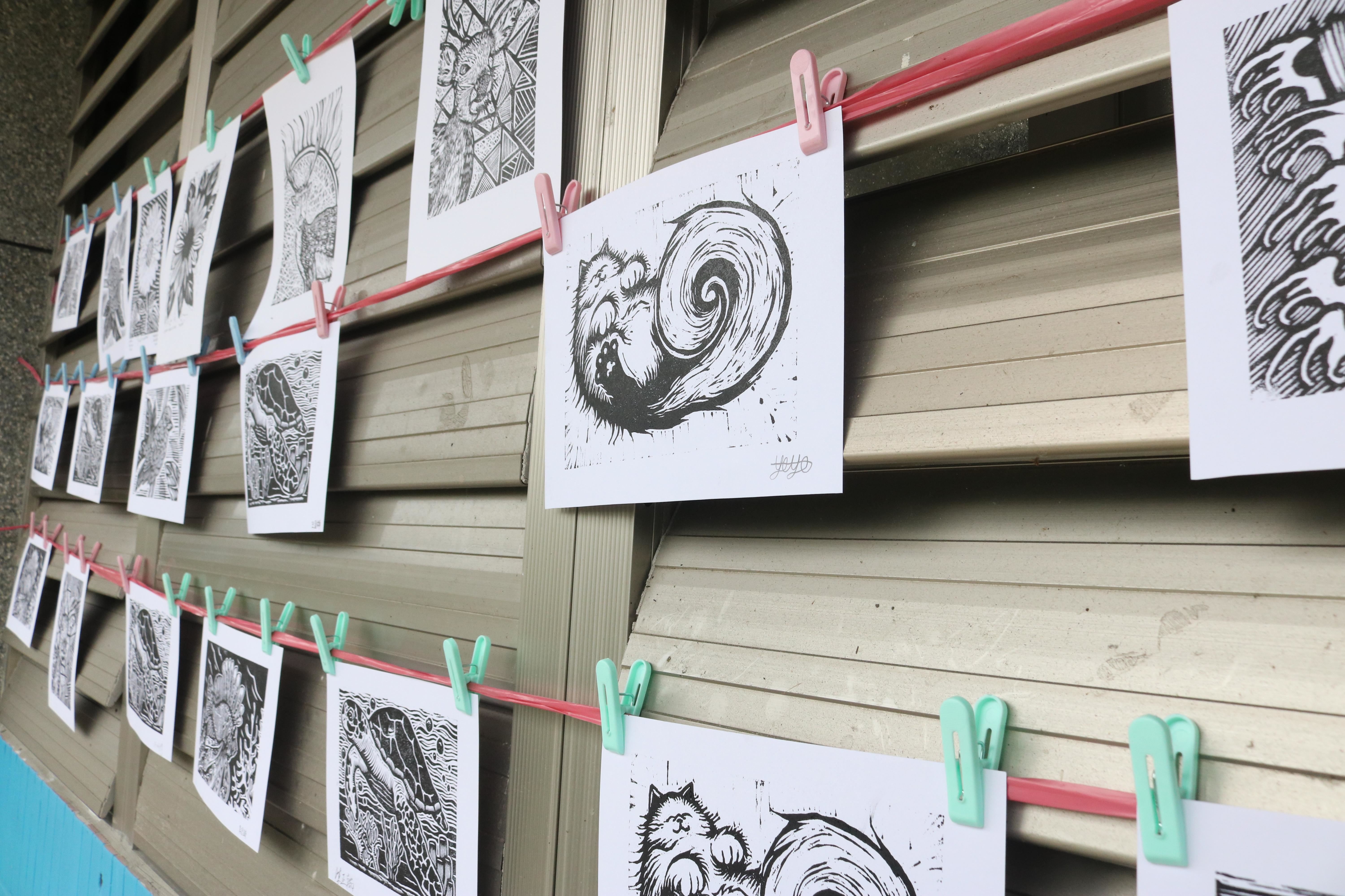 來自馬來西亞沙巴的藝術團體Pangrok Sulap(龐克搖滾社)則帶領學生體驗社區木刻版畫創作。同學們自由發想與島嶼生活、歷史記憶相關的圖像,由藝術家協助完成雕刻與印刷,最終每人帶回專屬於自己的歷史印象作品。這項工作坊不僅傳授技術,更鼓勵學生以圖像作為自我與土地對話的媒介。