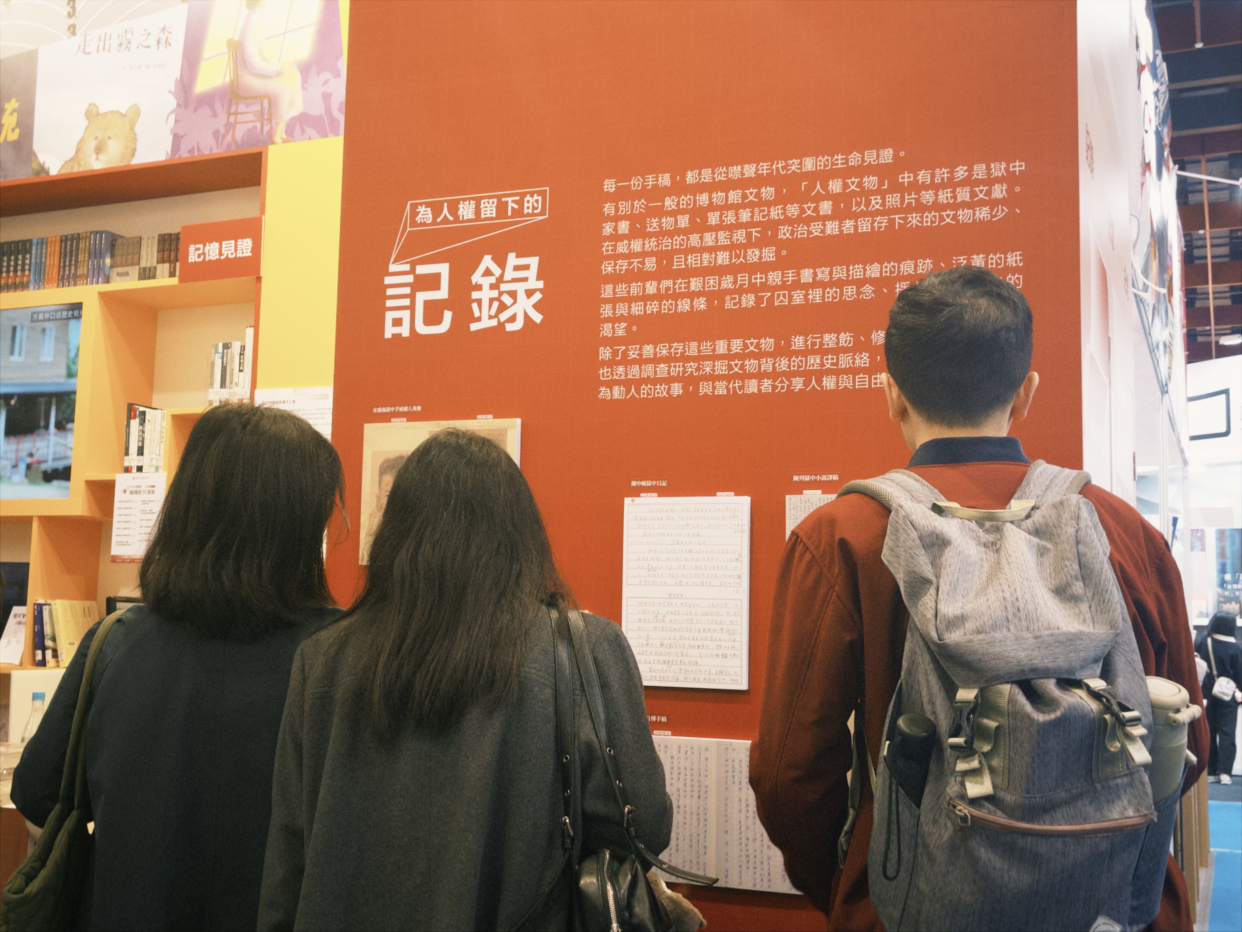 本次人權館展位最大亮點為首度規劃的「為人權留下的記錄」專區,透過可供翻閱的政治受難者文物手稿複製件,觀眾得以近距離閱讀前輩在獄中的書寫痕跡,體會箇中生命故事,認識博物館文物從典藏、研究到出版轉譯的歷程,了解博物館所肩負之歷史傳承與知識生產的社會責任。此外,現場展示的人權相關獲獎書籍、圖書館電子書服務,以及政治受難者相關著作、人權教育繪本工作坊「畫話:一座島的故事」歷屆學員繪本小書等豐富的展品,從學術研究、受難當事人書寫到親子閱讀、藝術創作,更進一步展現人權閱讀的跨齡與多元。